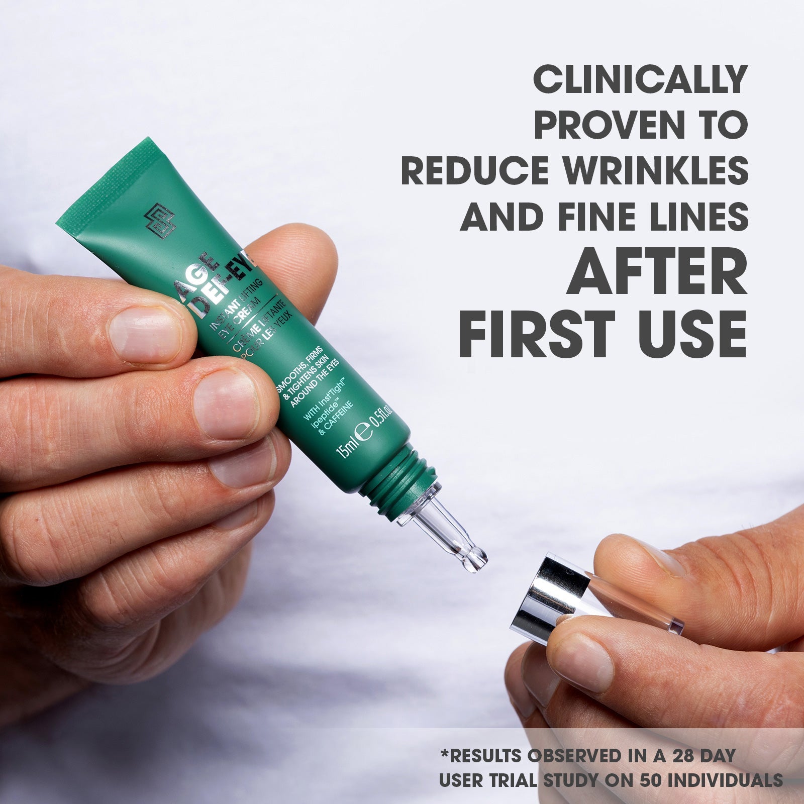 This powerful eye cream is clinically proven to tighten, firm and revive tired eyes over regular use, with the benefits of an instant temporary effect to smooth fine lines and wrinkles in under 90 seconds.