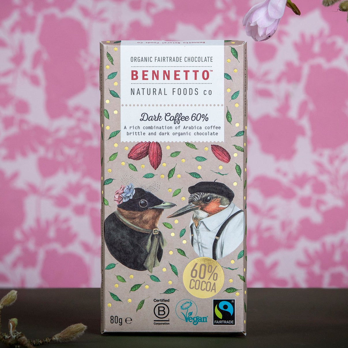 A rich combination of Arabica coffee in organic dark chocolate. Strong but perfectly well-balanced.