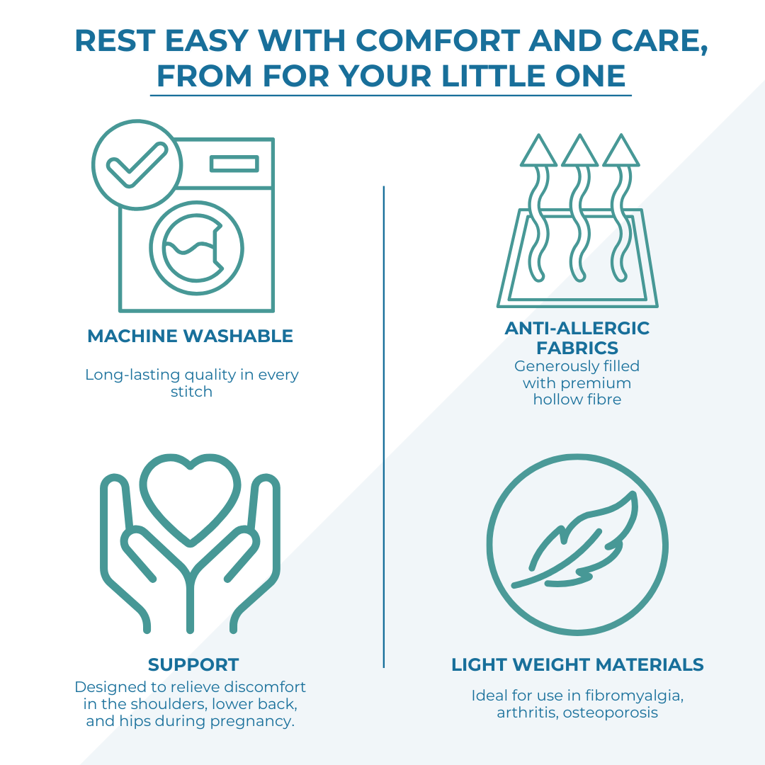 The easy-to-carry pillow case allows you to take your maternity pillow with you wherever you go, ensuring uninterrupted comfort even while traveling. With its anti-allergenic material, this pillow is safe and suitable for all individuals, providing peace of mind during your pregnancy.
