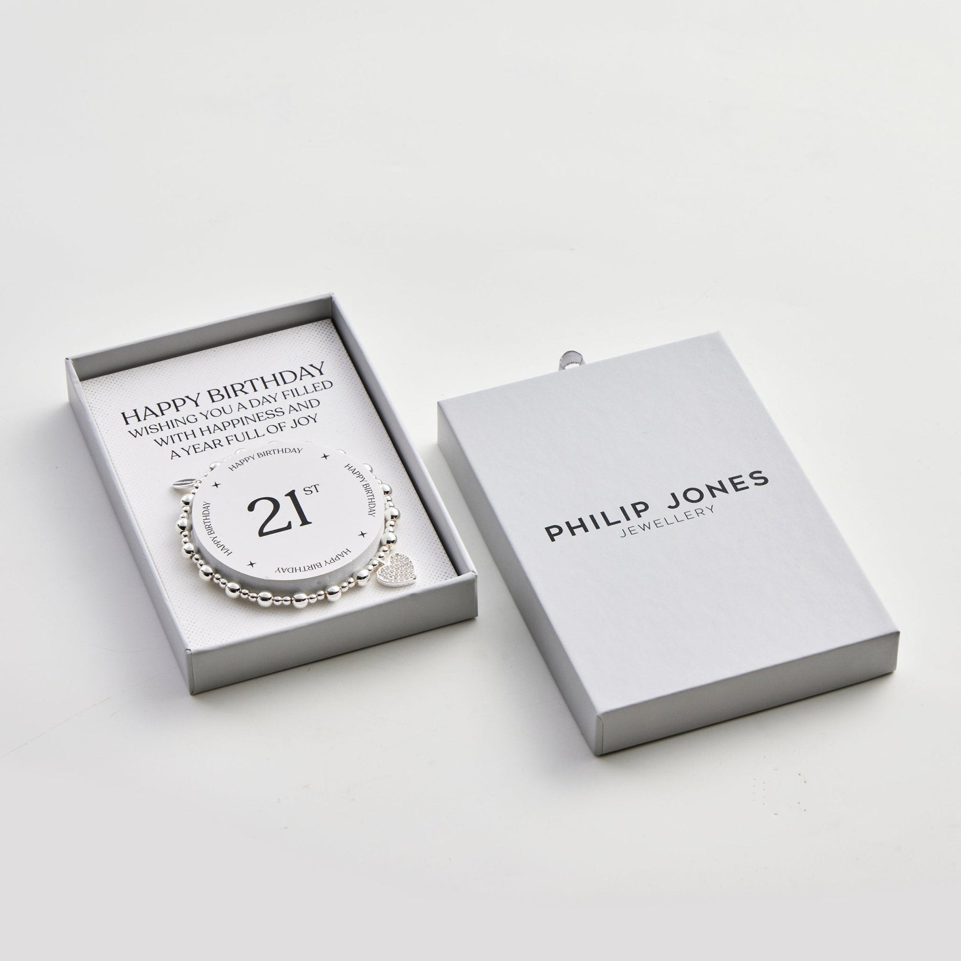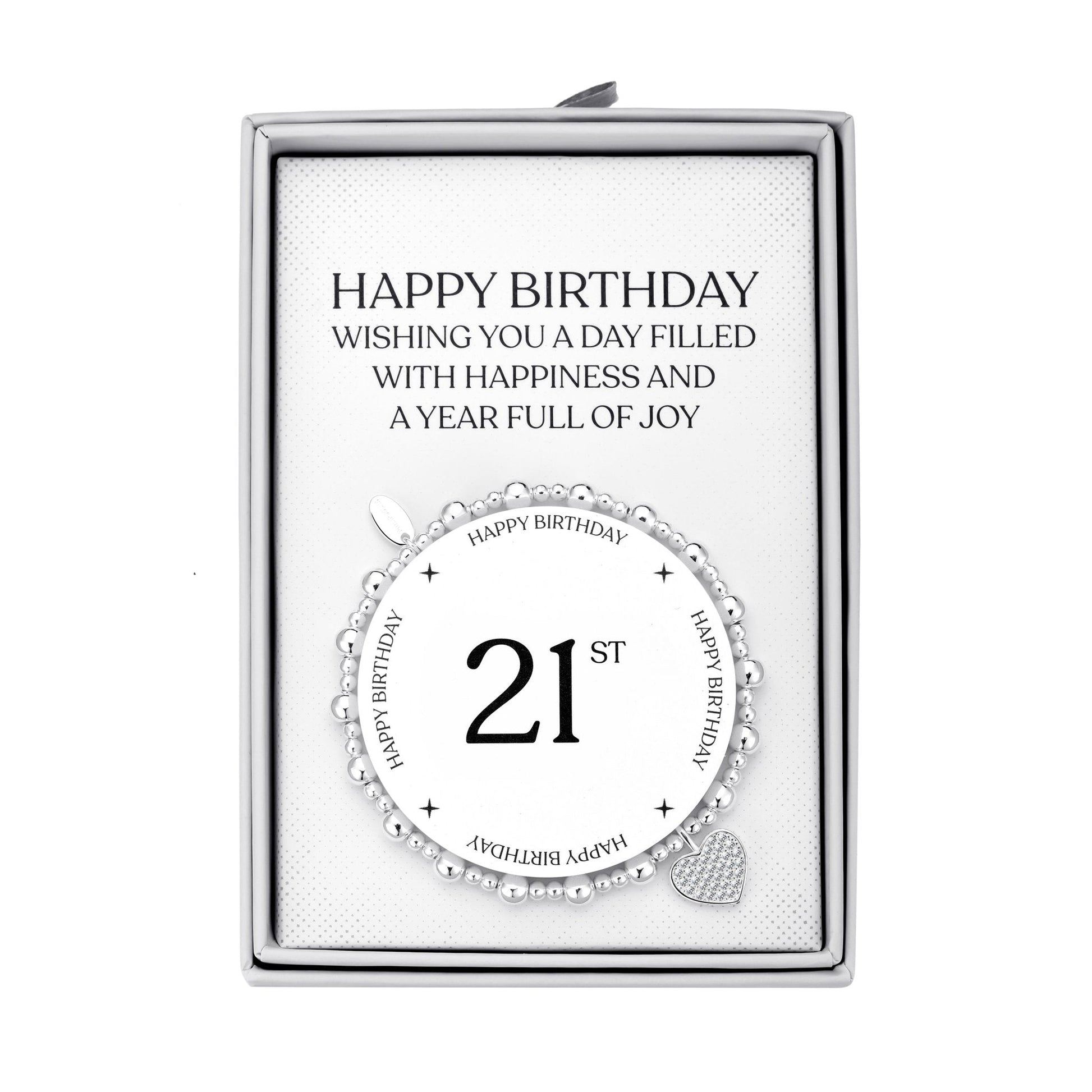 21st Birthday Heart Charm Stretch Bracelet with Quote Gift Box
