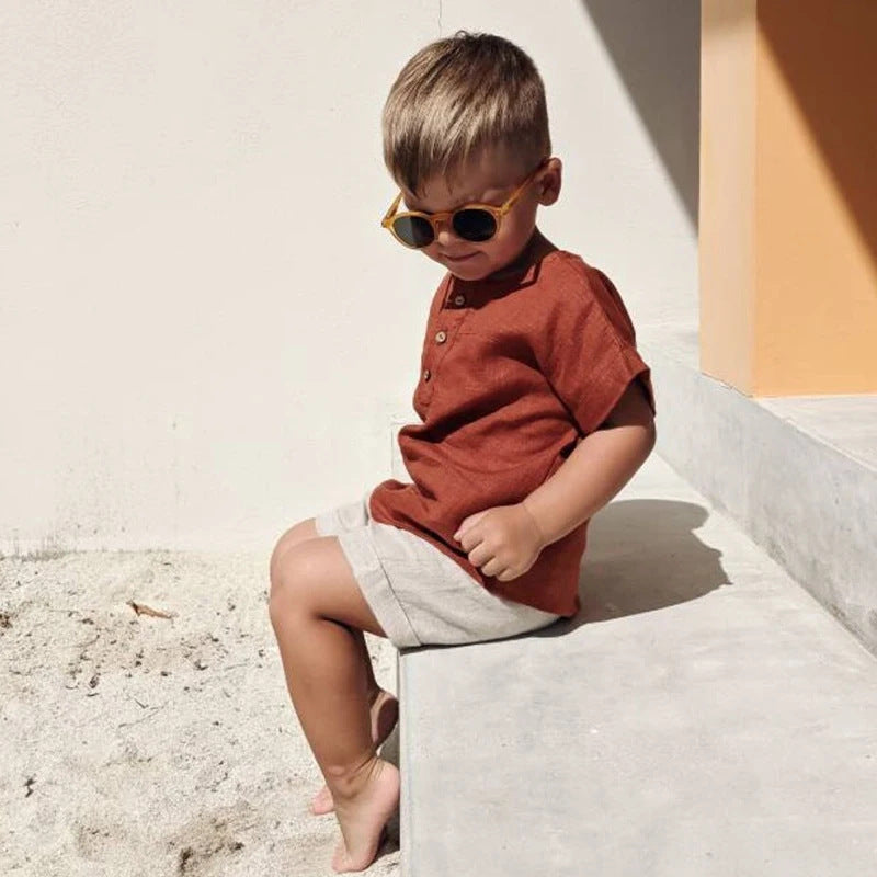 Product information: Pattern: stripes, Plaid Color: blue stripes, khaki stripe, embroidered red, white Suitable height: 90cm,100cm,110cm,120cm,130cm Fabric name: hemp blended Main fabric composition: linen Applicable gender: neutral/both men and women Elements: stripes, pastoral, cute, color matching, British Sleeve length: short sleeve Suitable season: summer, spring Style: Casual