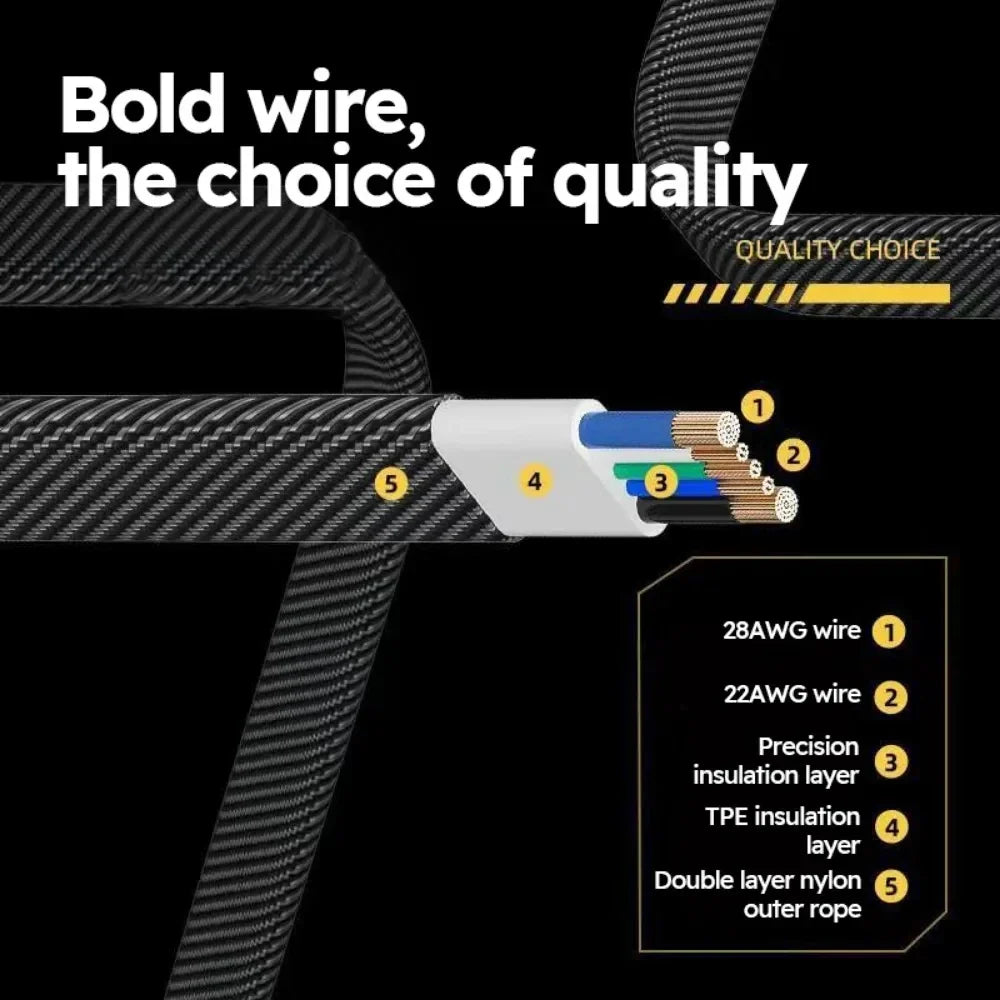 4-in-1 USB C Charging Cable TypeC Lightning Connector Nylon Braided PD 65W 27W Fast Charging for iPhone Samsung Xiaomi Android