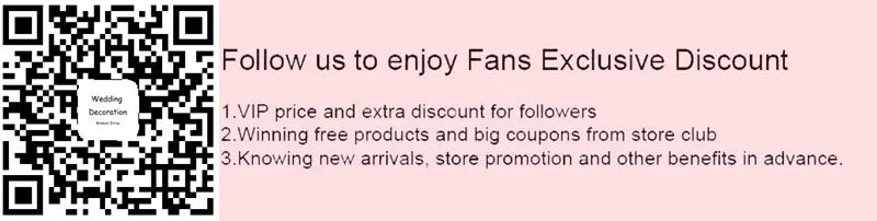 Follow us to enjoy Fans Exclusive Discount1.VIP Price and Extra Discount for Followers2.Knowing new arrivals,Store Promotion3.Winning free Products or big Coupons and other Benefits in advance
