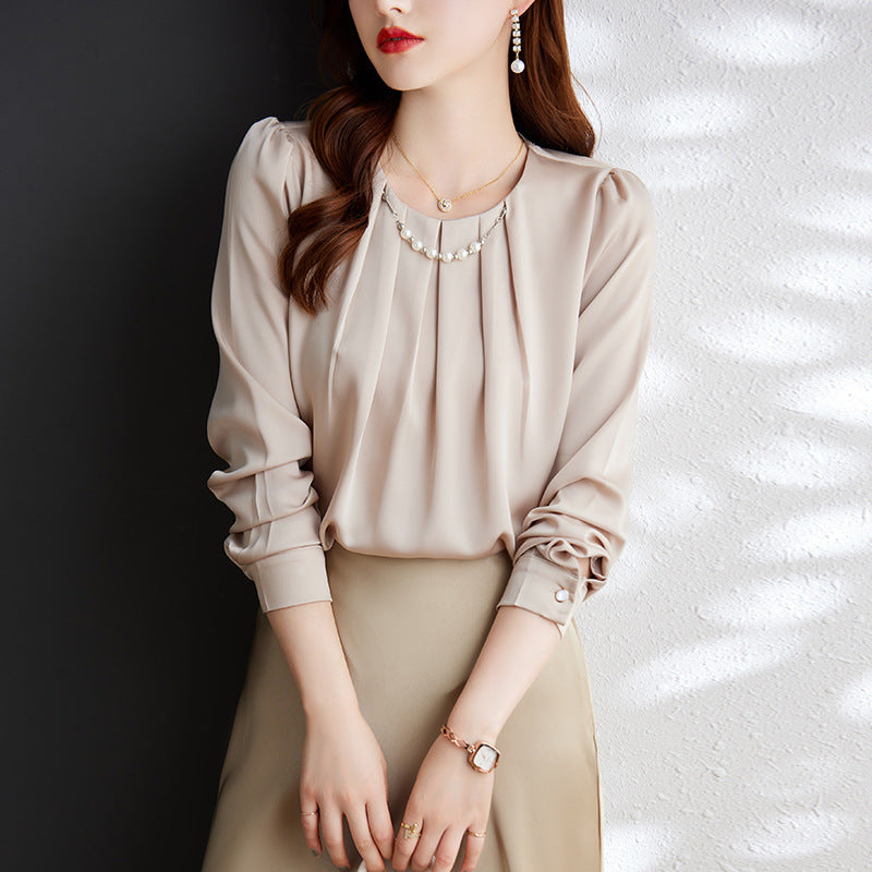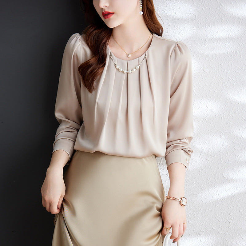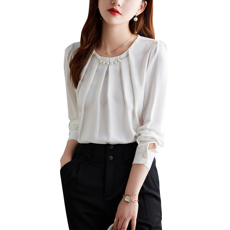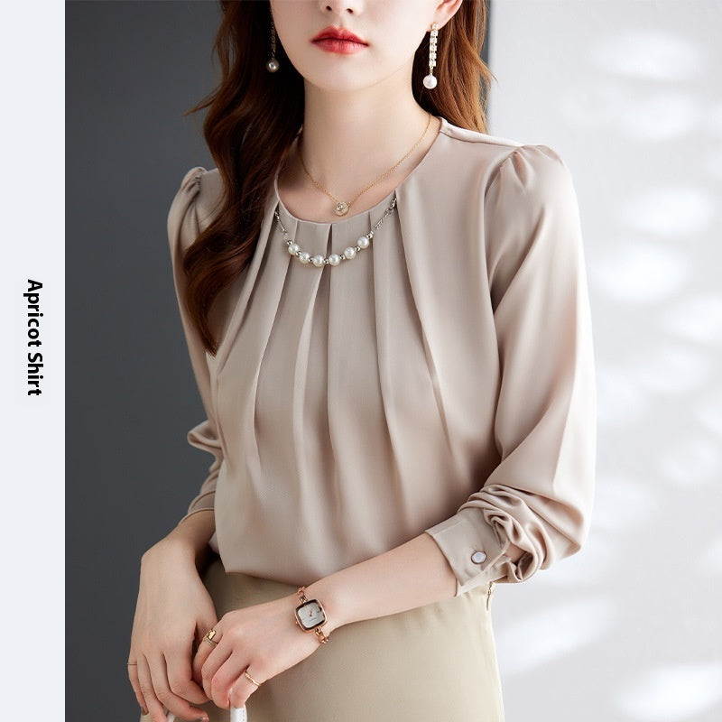 Product information: Fabric name: Polyester Color: white shirt, aqua blue shirt, apricot shirt Size: S,M,L,XL,XXL,XXXL Length: ordinary (50cm Style type: temperament commute Popular element: fold Style: pullover Style: urban style Process: non-ironing treatment