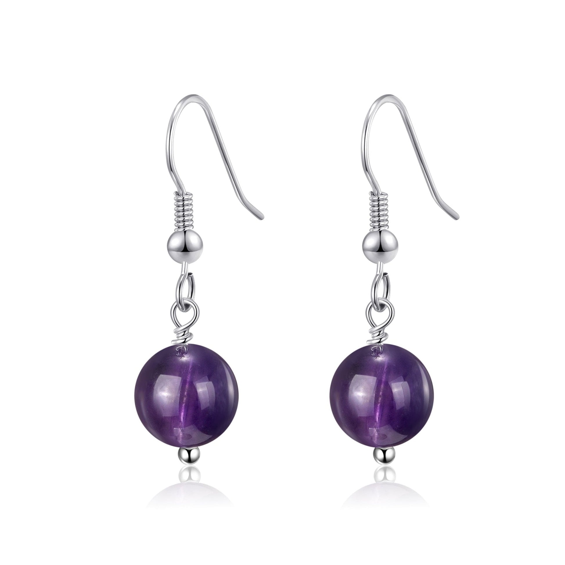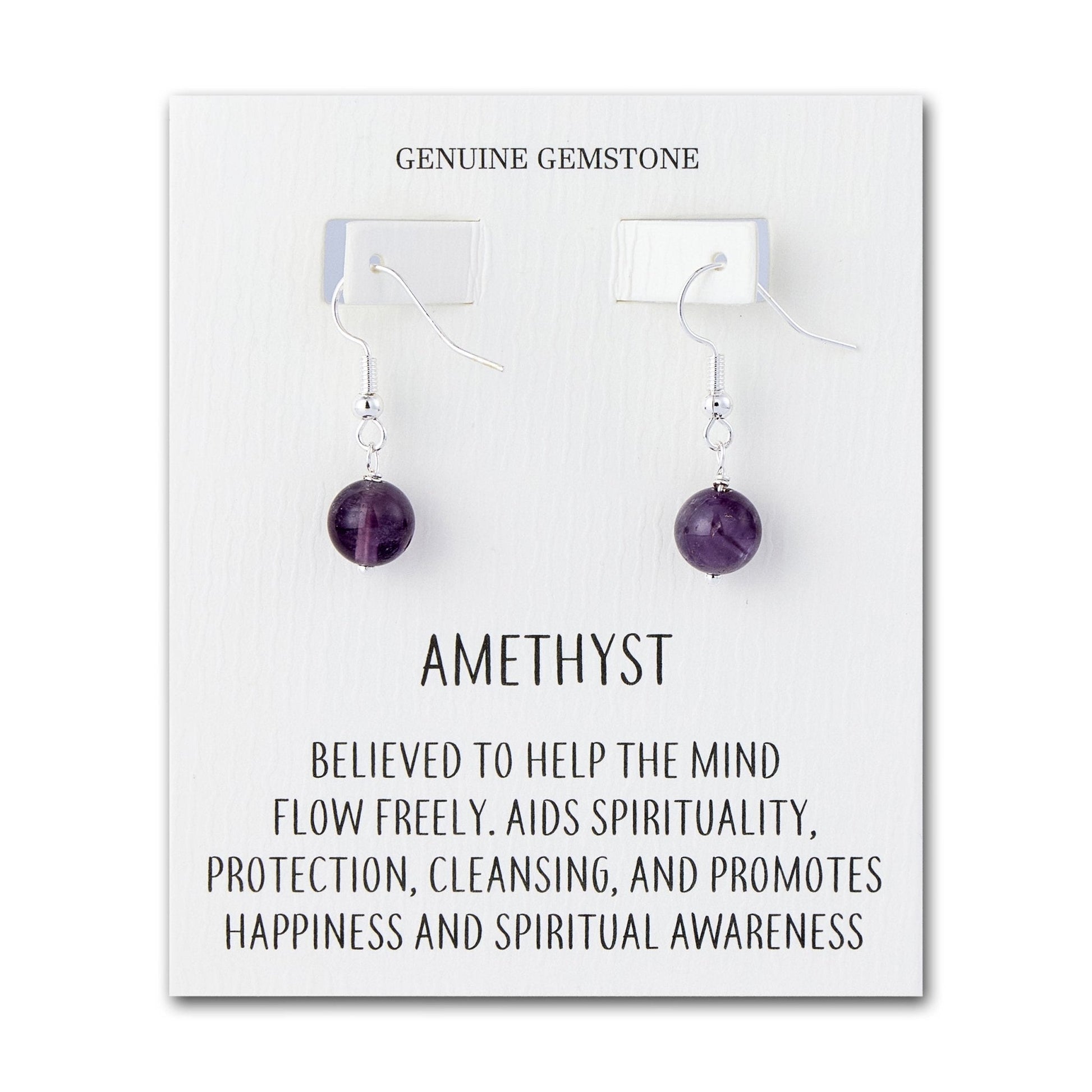 Amethyst Gemstone Round Drop Earrings with Quote Card