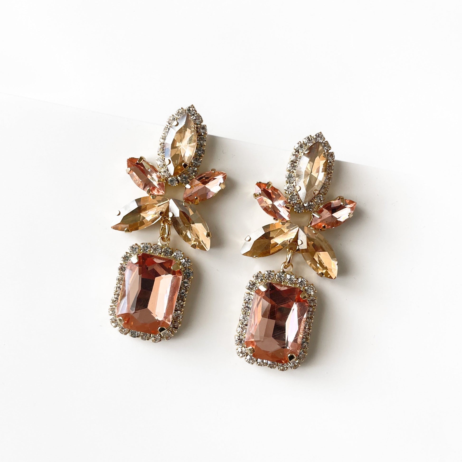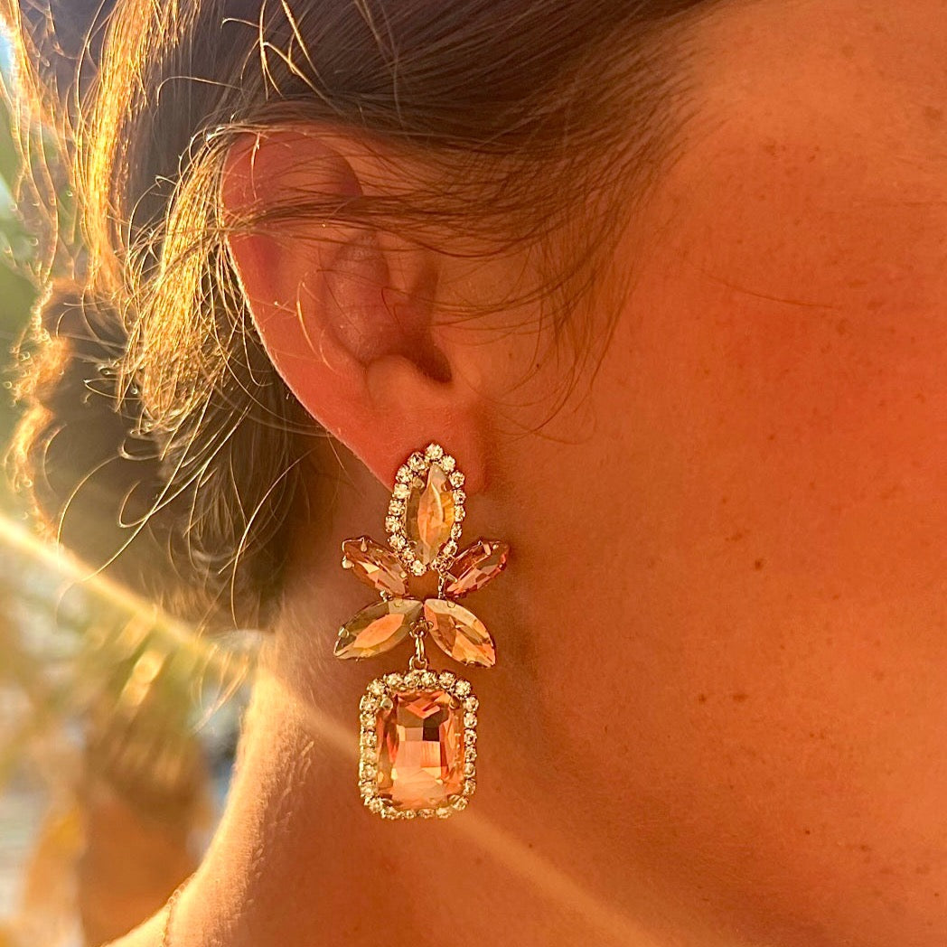 A clustered collection of dazzling peach, coral and clear gems, the Analucia jewel earrings are vintage inspired and are sure to turn heads whenever you enter a room.