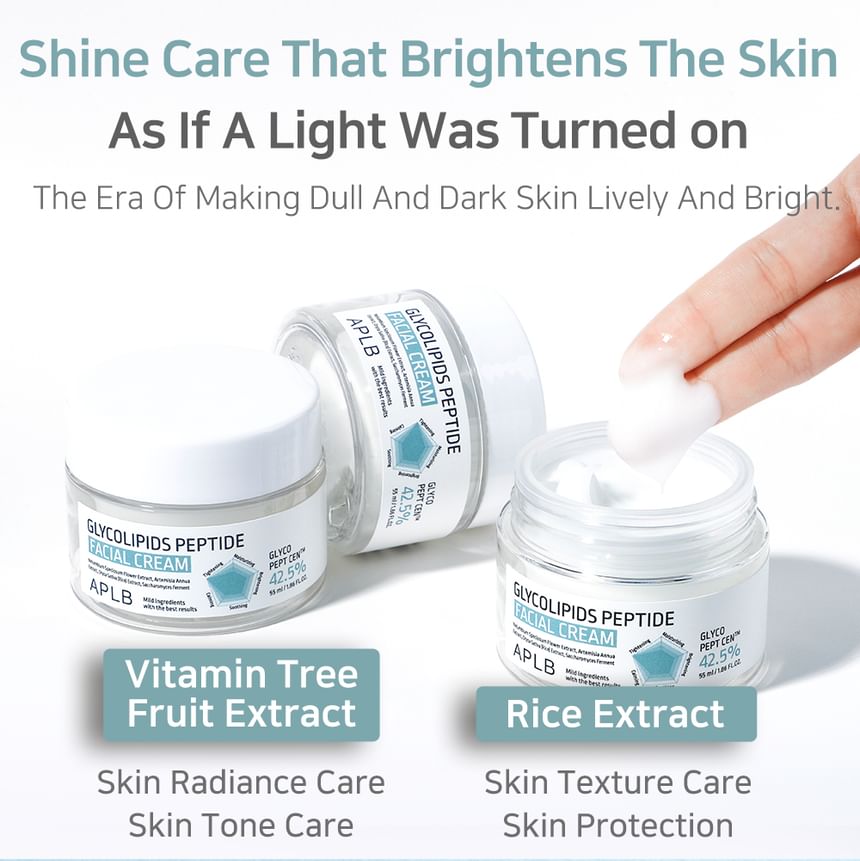 The APLB Glycolipids Peptide Facial Cream is a do-it-all moisturiser designed to restore balance and resilience to your skin. Formulated with glycolipids and peptides, it helps improve skin elasticity, refine pores, and support a healthy oil-water balance. A high concentration of centella asiatica extract and a 3x centella complex deliver soothing care to sensitive skin, while hyaluronic acid, beta glucan, and squalane deeply hydrate and strengthen the skin barrier. Lightweight and fragrance-free with a slightly acidic pH, this cream is suitable for all skin types, including sensitive skin.