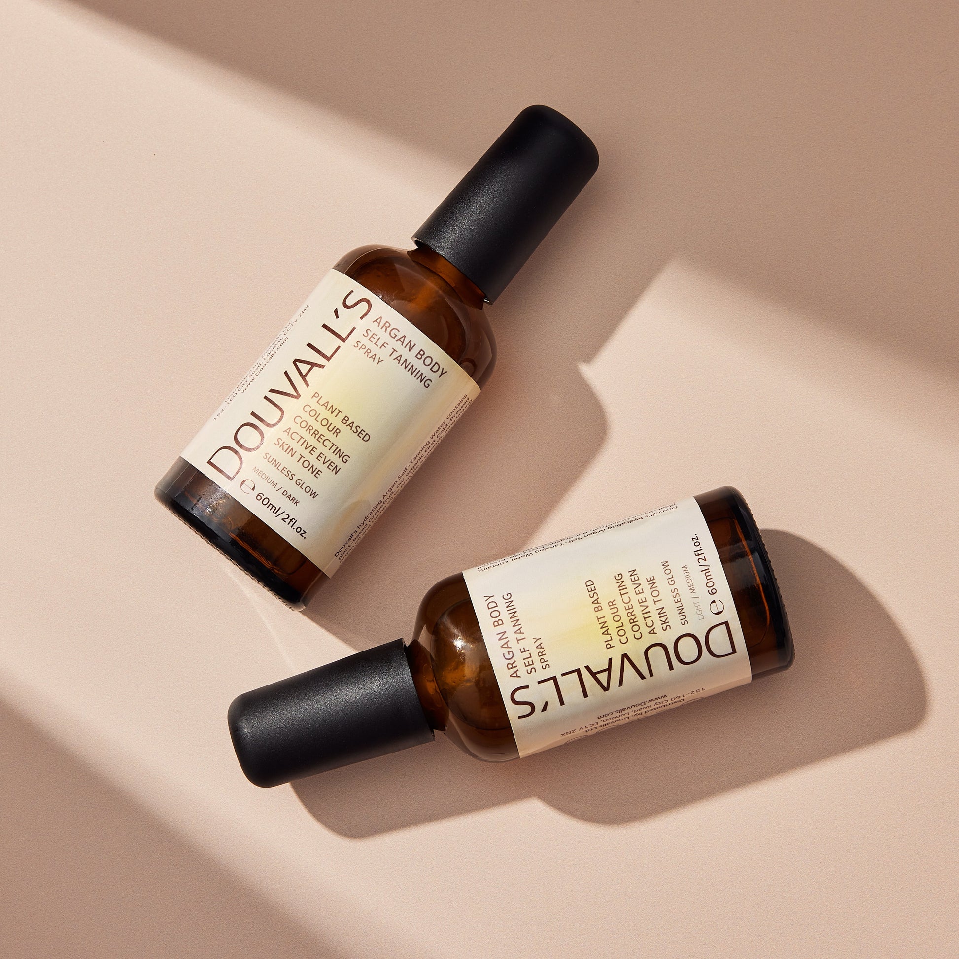 Douvall’s Hydrating Argan Self tanning Water is packed with plant based Grapefruit, our organic First Cold Pressed Argan oil and Hemp oil and aloe vera for a nourished, even and long lasting tan with no streaks, stains or smells.