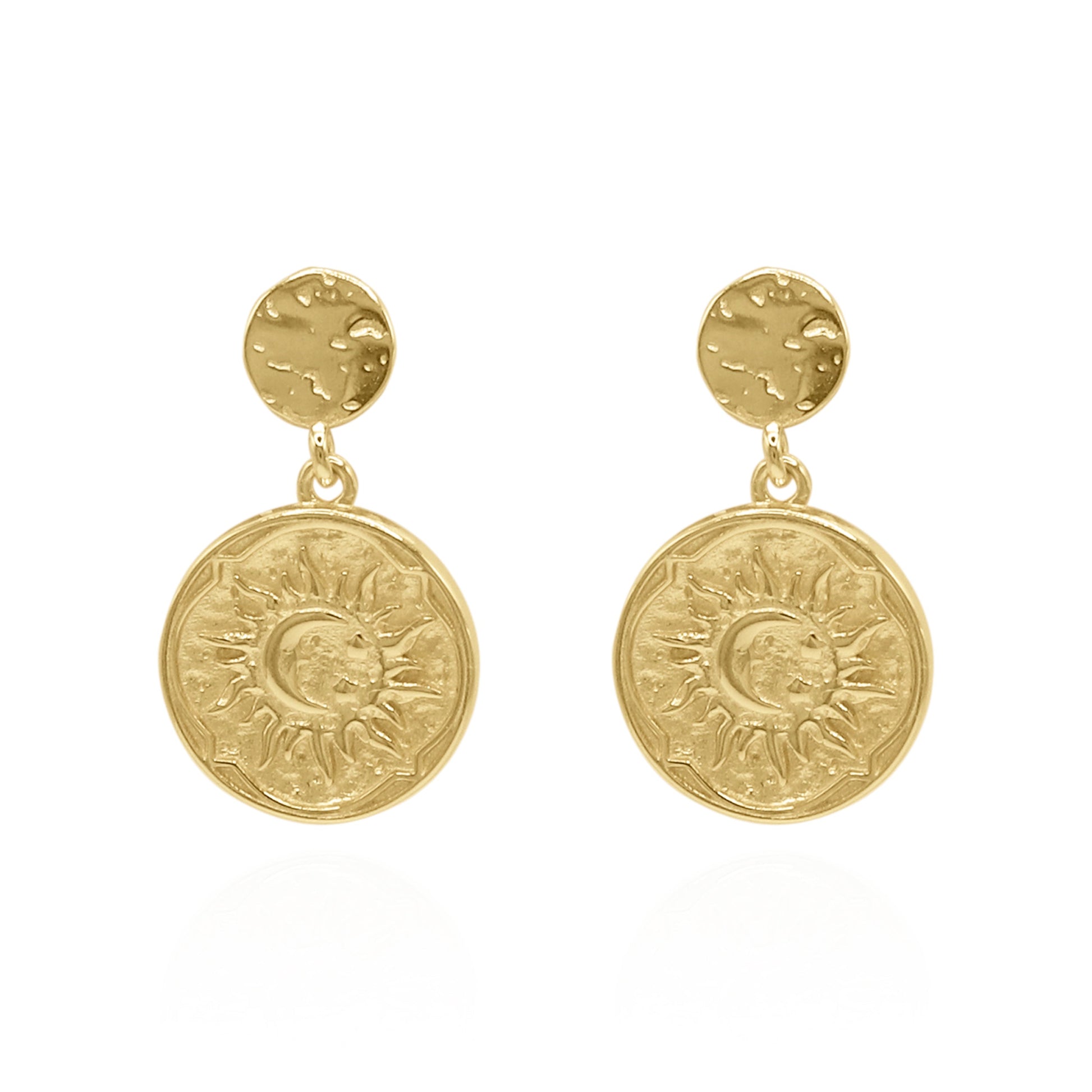 Aruna Sun Coin Drop Earrings | 18k Gold Plated