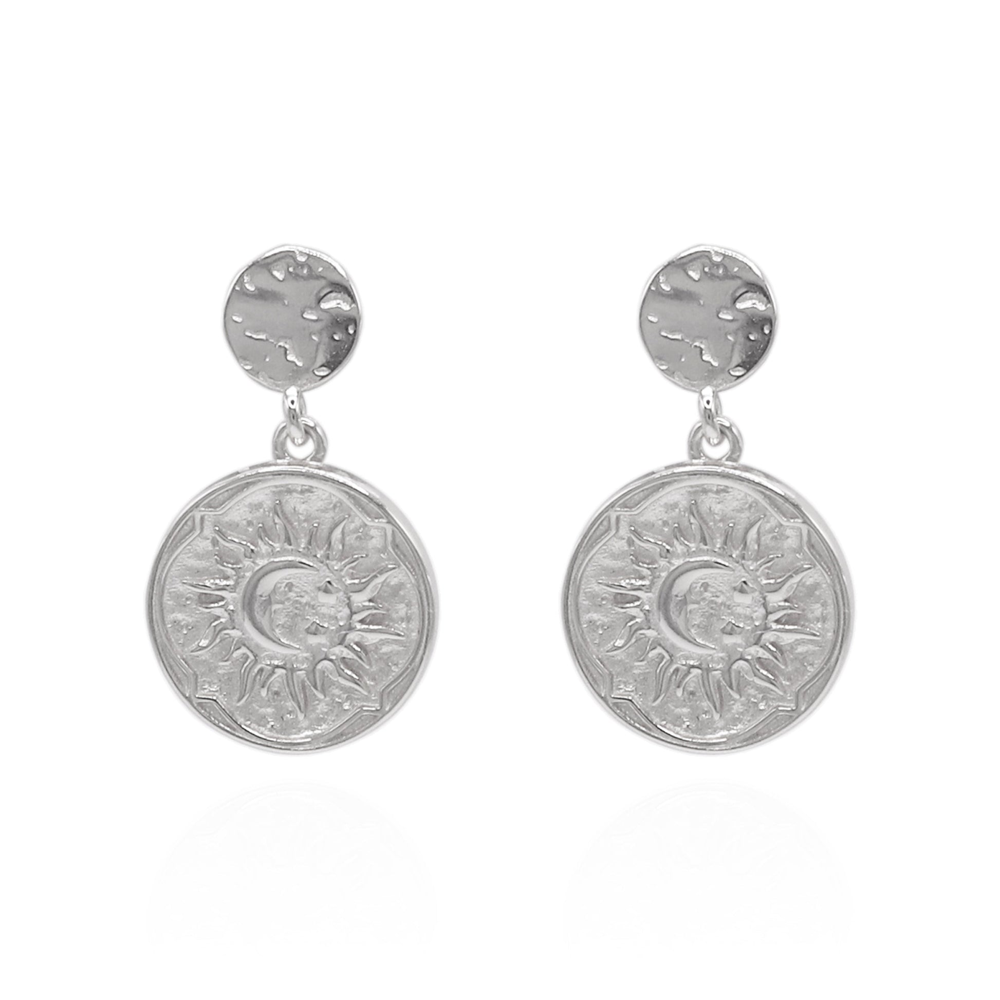Aruna Sun Coin Drop Earrings | 925 Sterling Silver