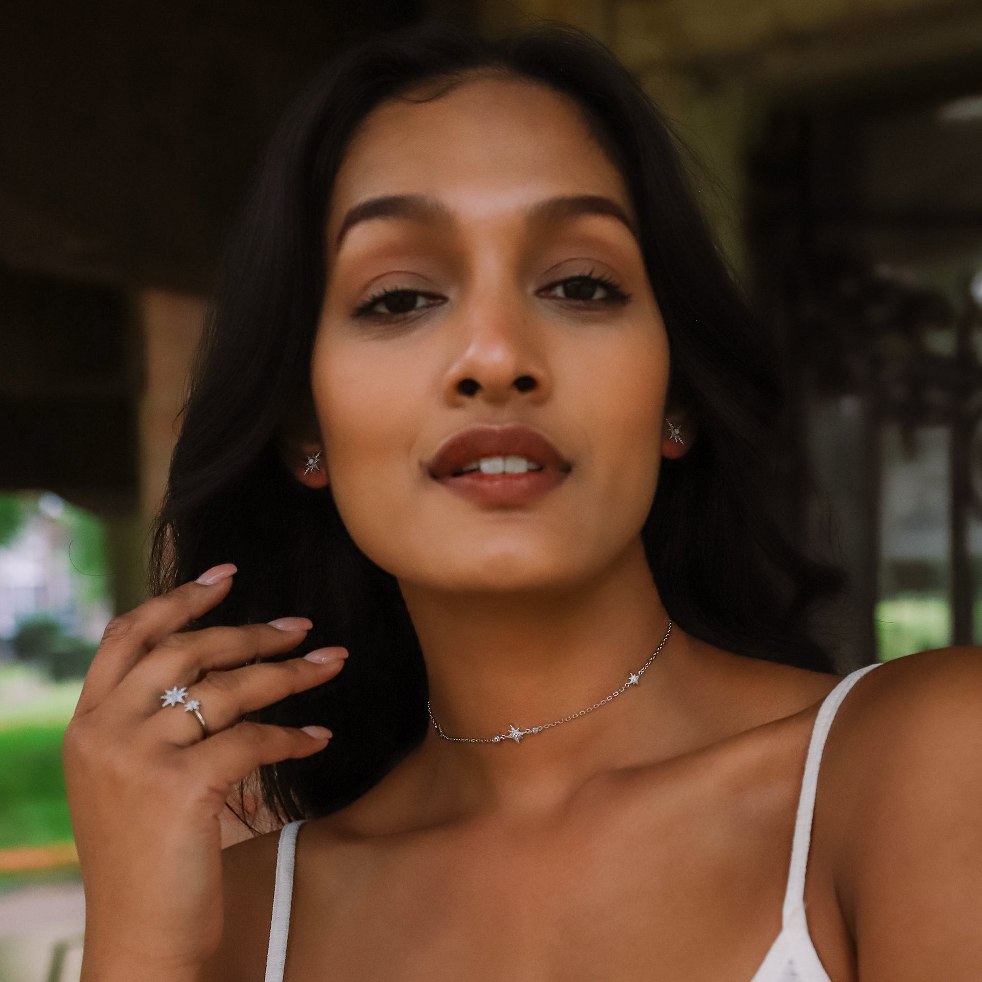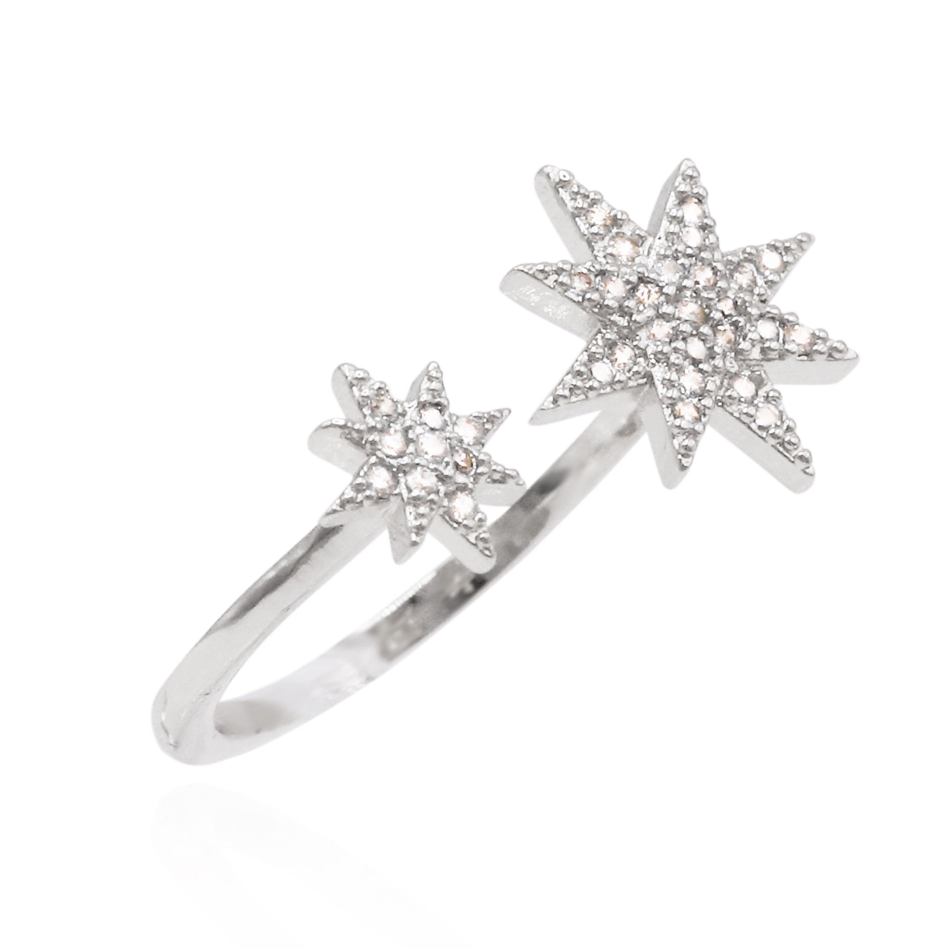 It's double trouble with our gorgeous two star Astrid open style ring crafted in an array of shimmering crystals set on a silver band.