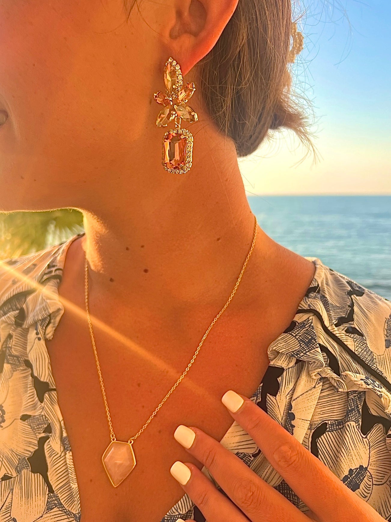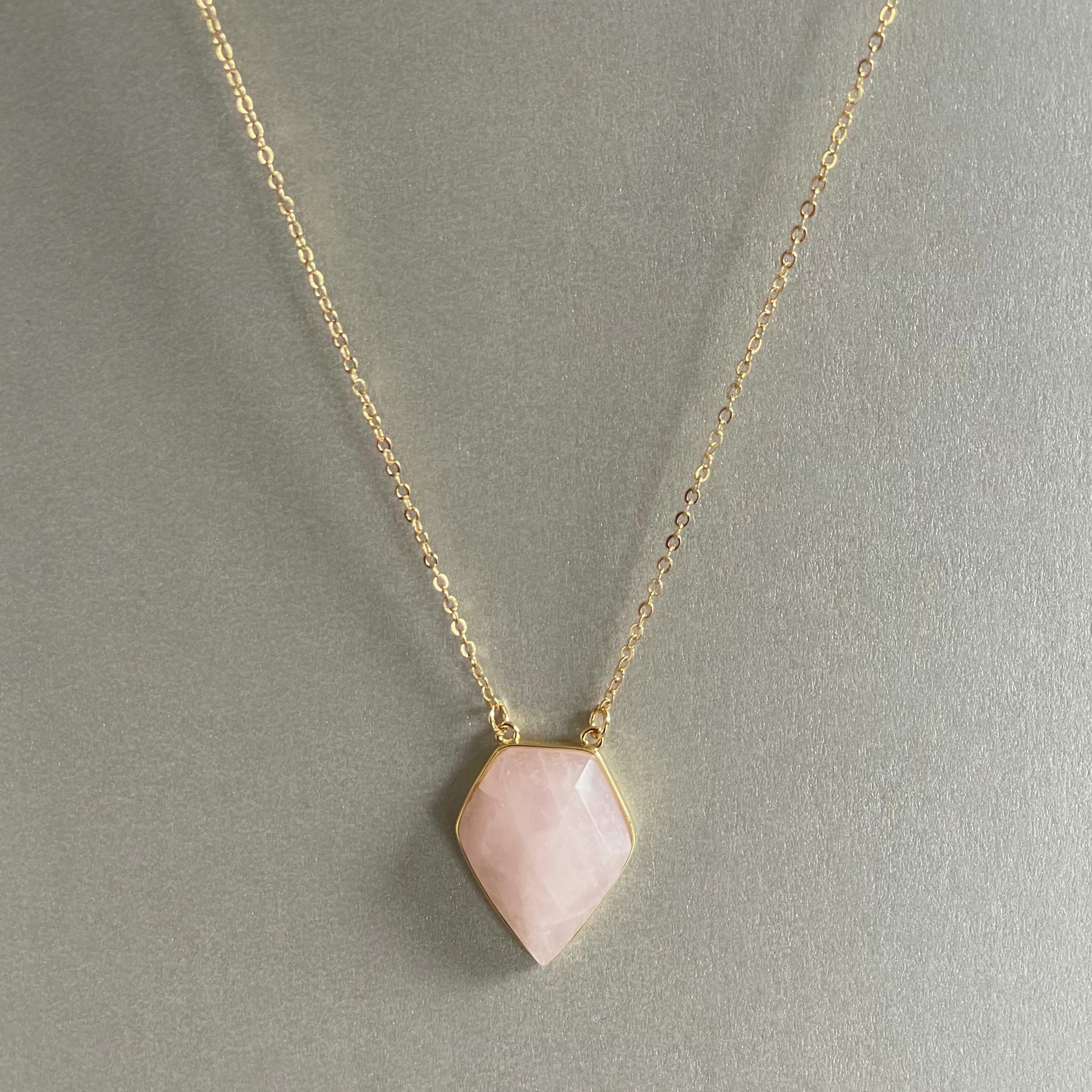 Take your gemstone obsession to a whole new level with the beautiful Athena rose quartz necklace. Rose quartz is gentle healing stone that is said to bring love in your life, we definitely love this piece!
