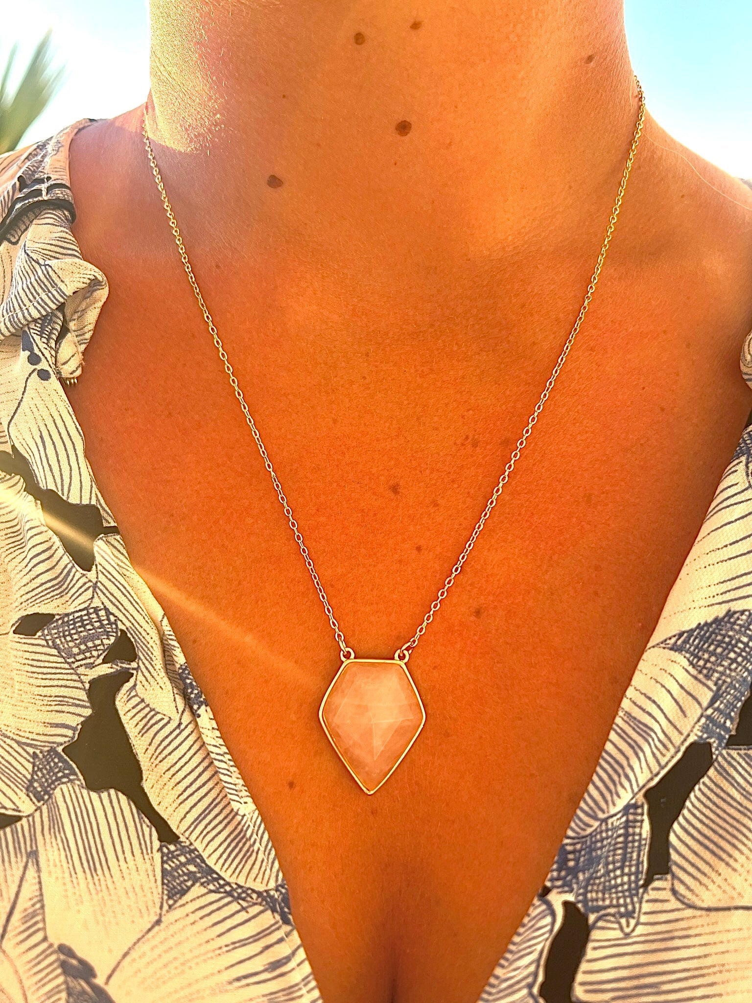 ⟡ Composition: Rose quartz crystal & 18K Gold Plated necklace.