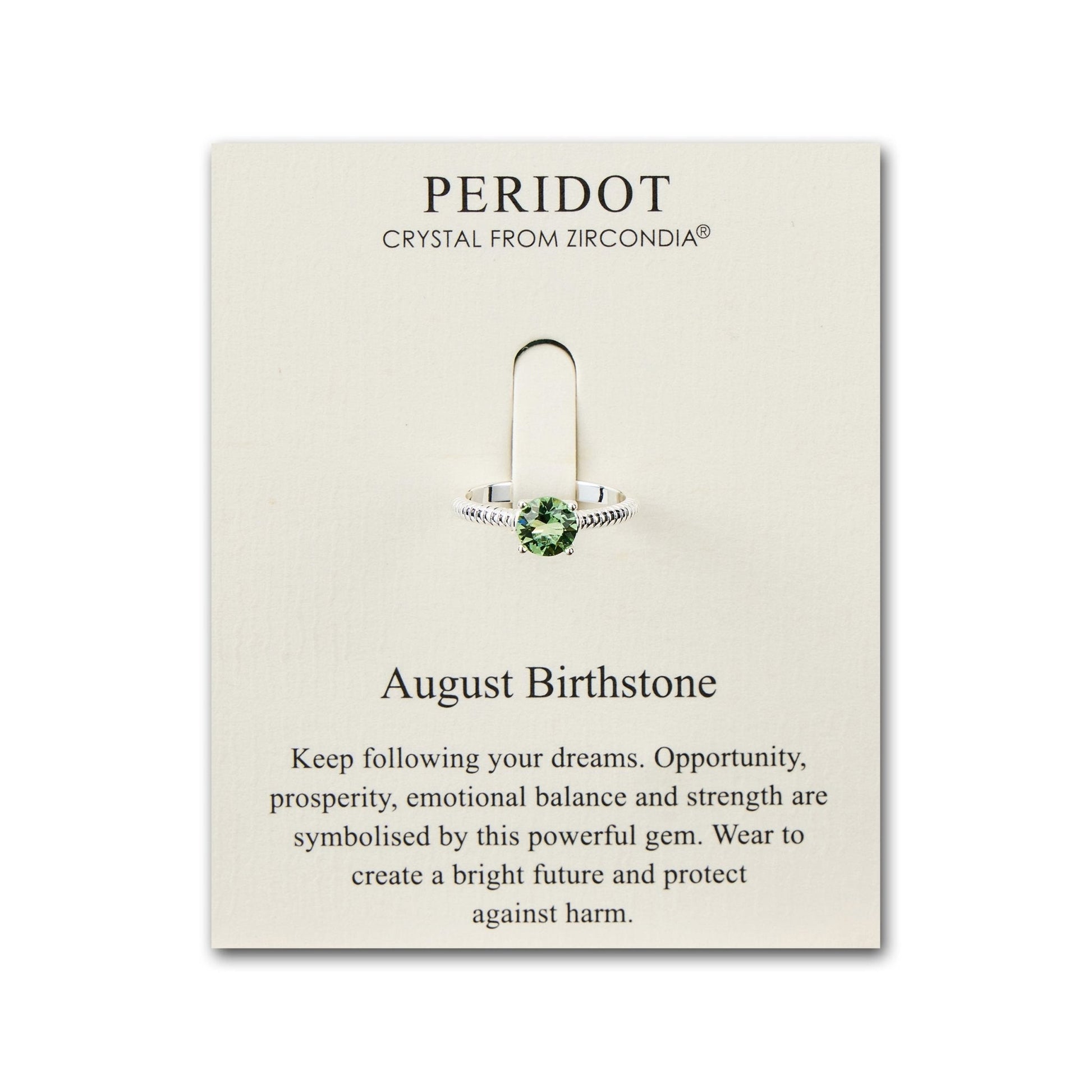 August (Peridot) Adjustable Birthstone Ring Created with Zircondia® Crystals