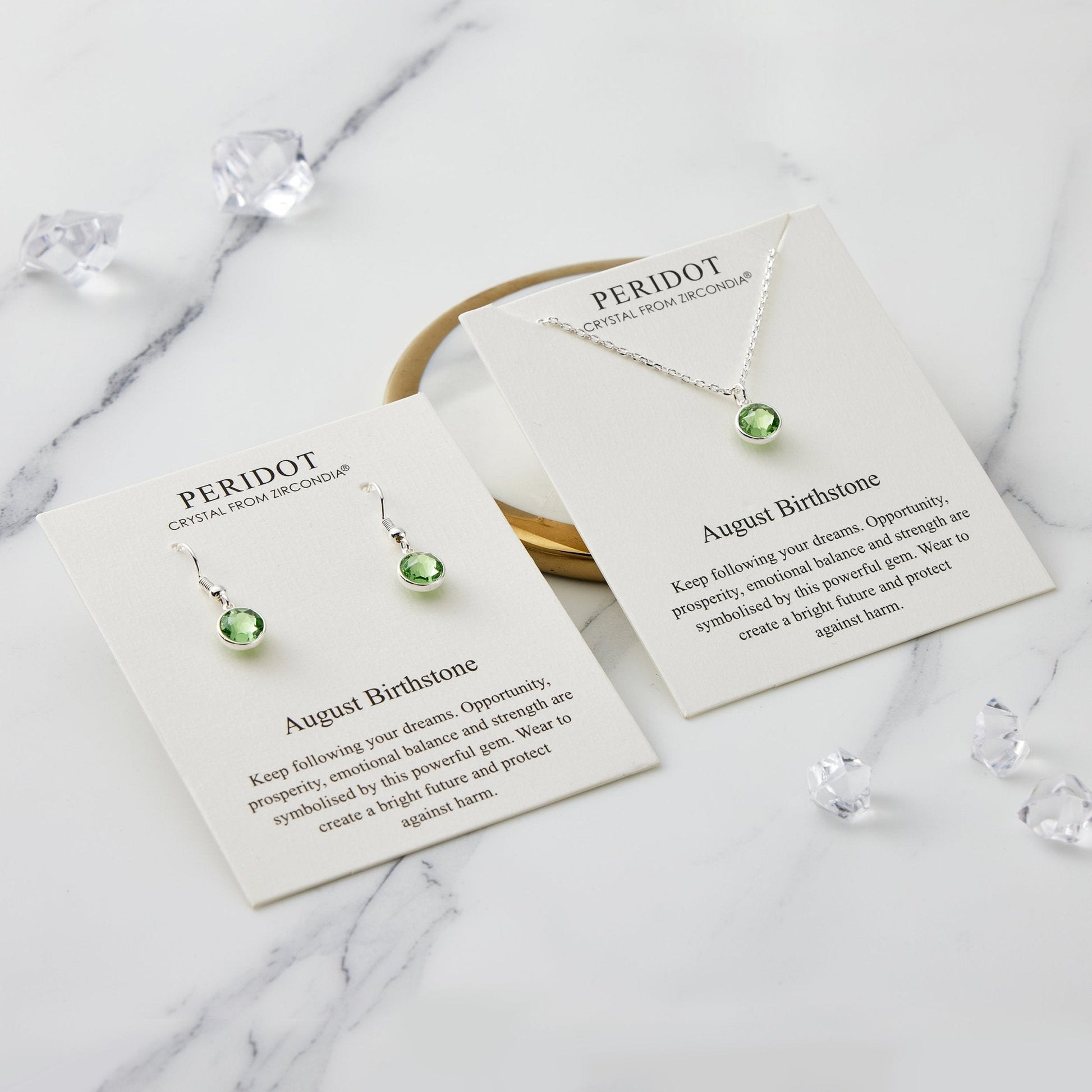 August (Peridot) Birthstone Necklace & Drop Earrings Set Created with Zircondia® Crystals