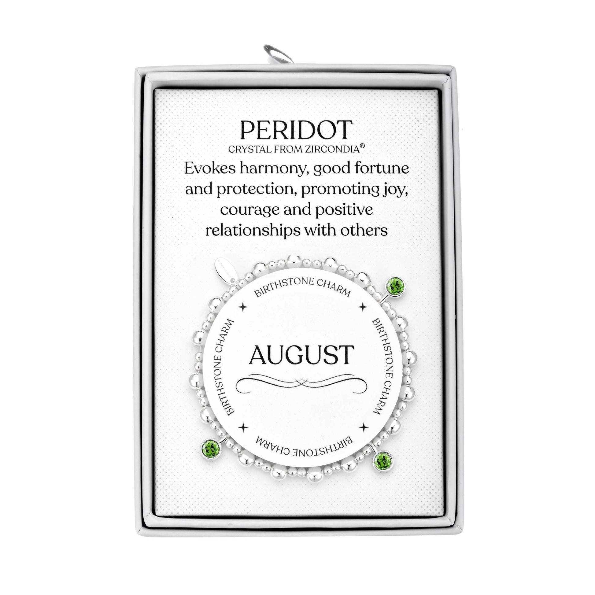 August (Peridot) Birthstone Stretch Charm Bracelet with Quote Gift Box