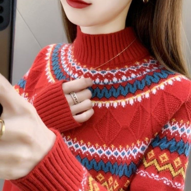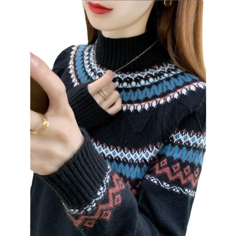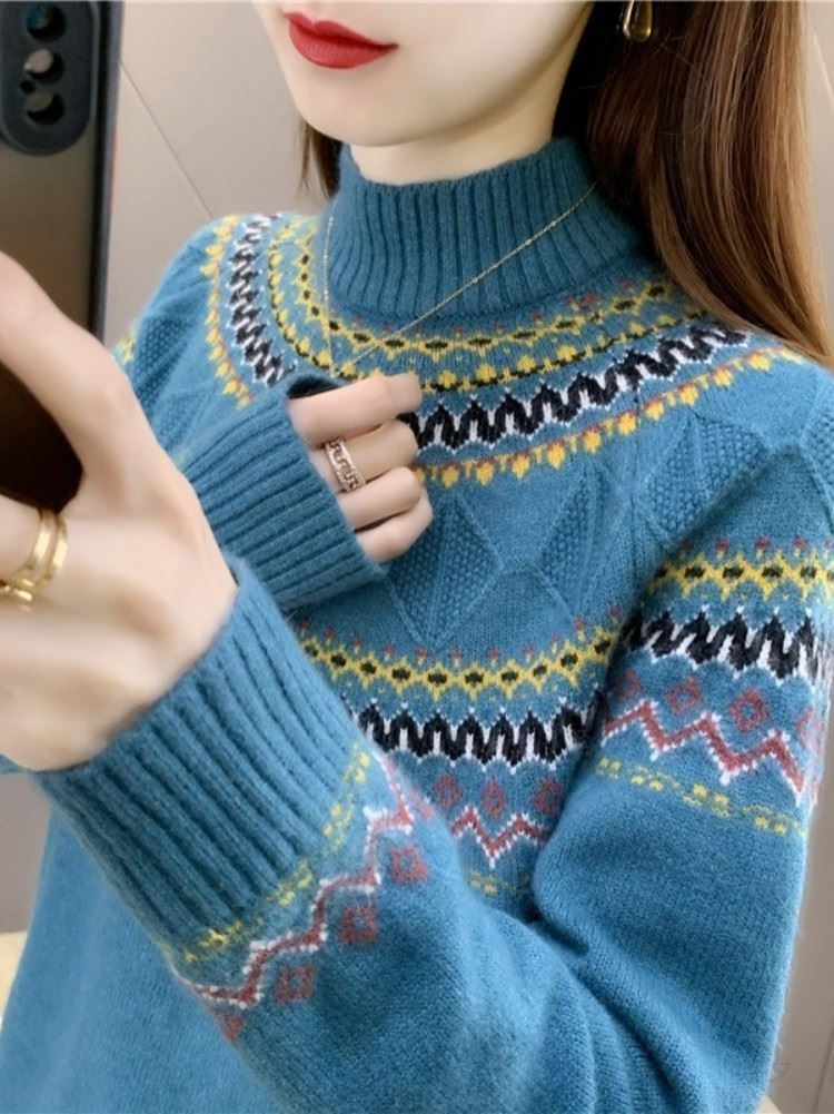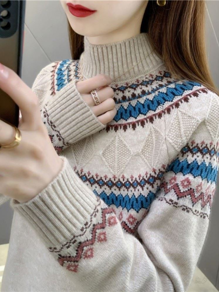 This mock neck sweater is a versatile addition to any wardrobe. Made of warm and cozy material, it is perfect for cooler weather. The classic design and flattering fit make it a staple piece for any outfit. It is a must-have for any fashion-forward woman.