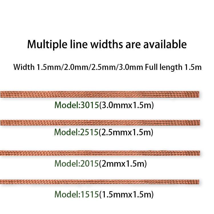 1. High-Efficiency Solder Removal & Thermal Conductivity: Crafted from copper with chemical formulation, the desoldering braid rapidly absorbs excess solder during PCB repairs. Its excellent thermal conductivity ensures residual solder in pads or through-holes melts quickly and gets thoroughly removed.