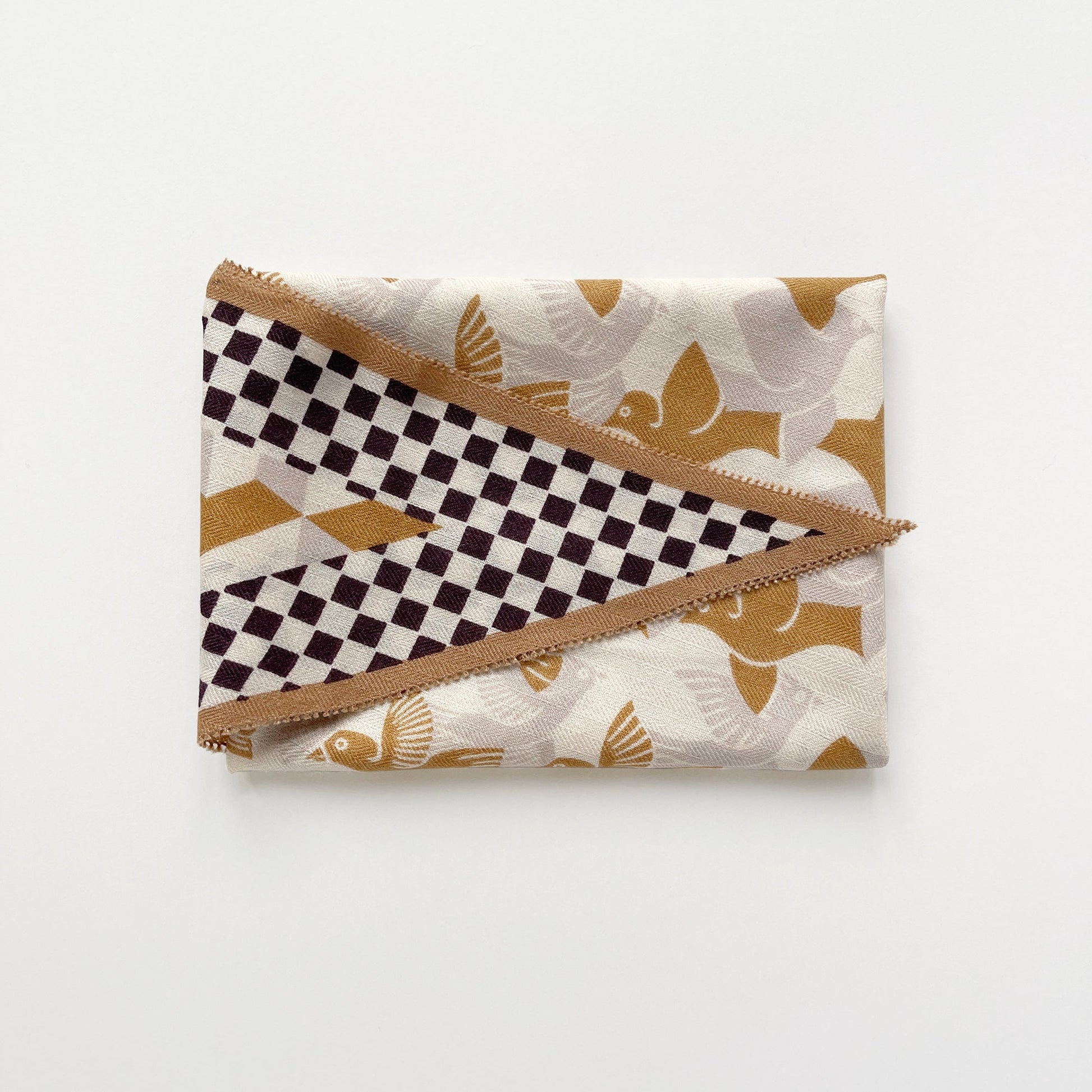 Looking for a stylish, non-bulky scarf that’s easy to match with your wardrobe? Look no further! Our luxurious blend of cashmere, wool, and silk makes this scarf the perfect choice. Thoughtfully designed in warm, earthy tones, it features a stunning pattern of stylized bird motifs framed by a checkerboard border in deep brown and cream.