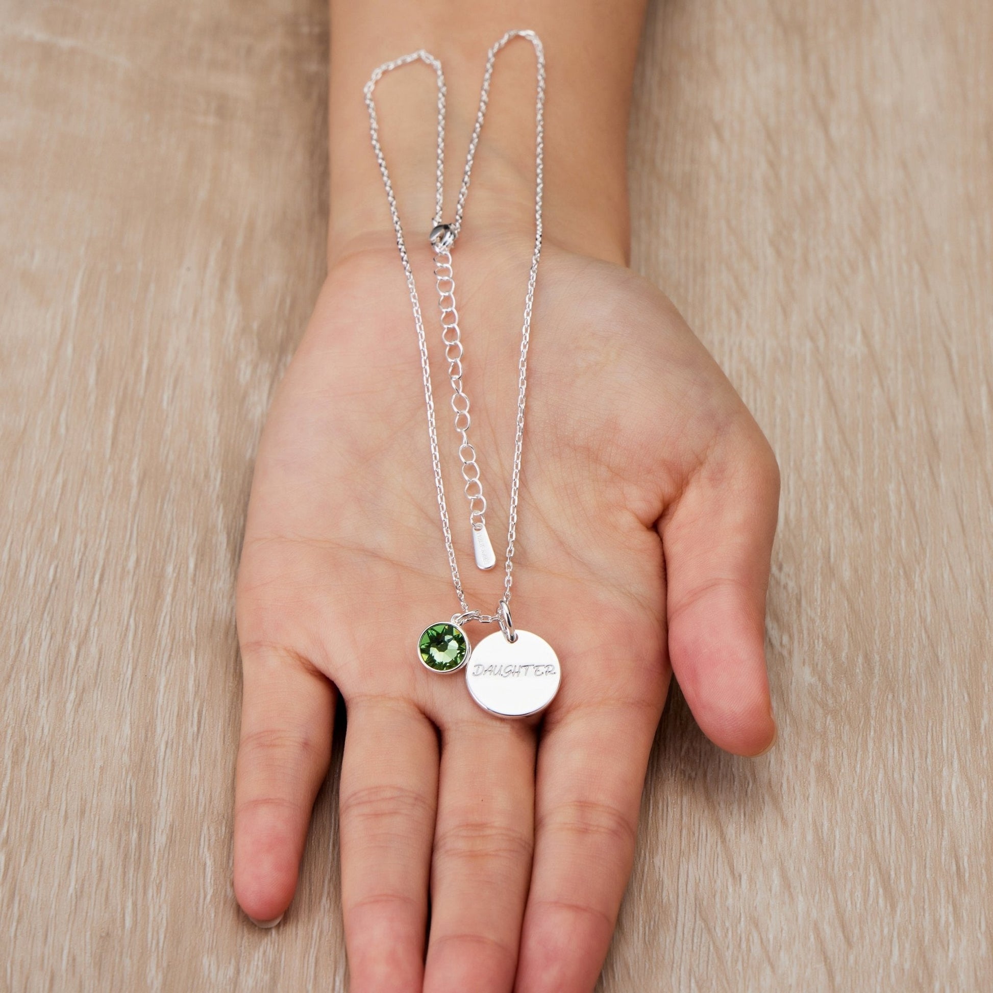 Celebrate her arrival with this Daughter Initial Birthstone Necklace by Philip Jones. Crafted with a silver plated brass alloy chain and lobster claw closure, this necklace flaunts a 14mm x 8.5mm pendant and an initial pendant of 15.3mm x 15.3mm with an 8mm round Zircondia® crystal. Wear it as a timeless reminder of your love.