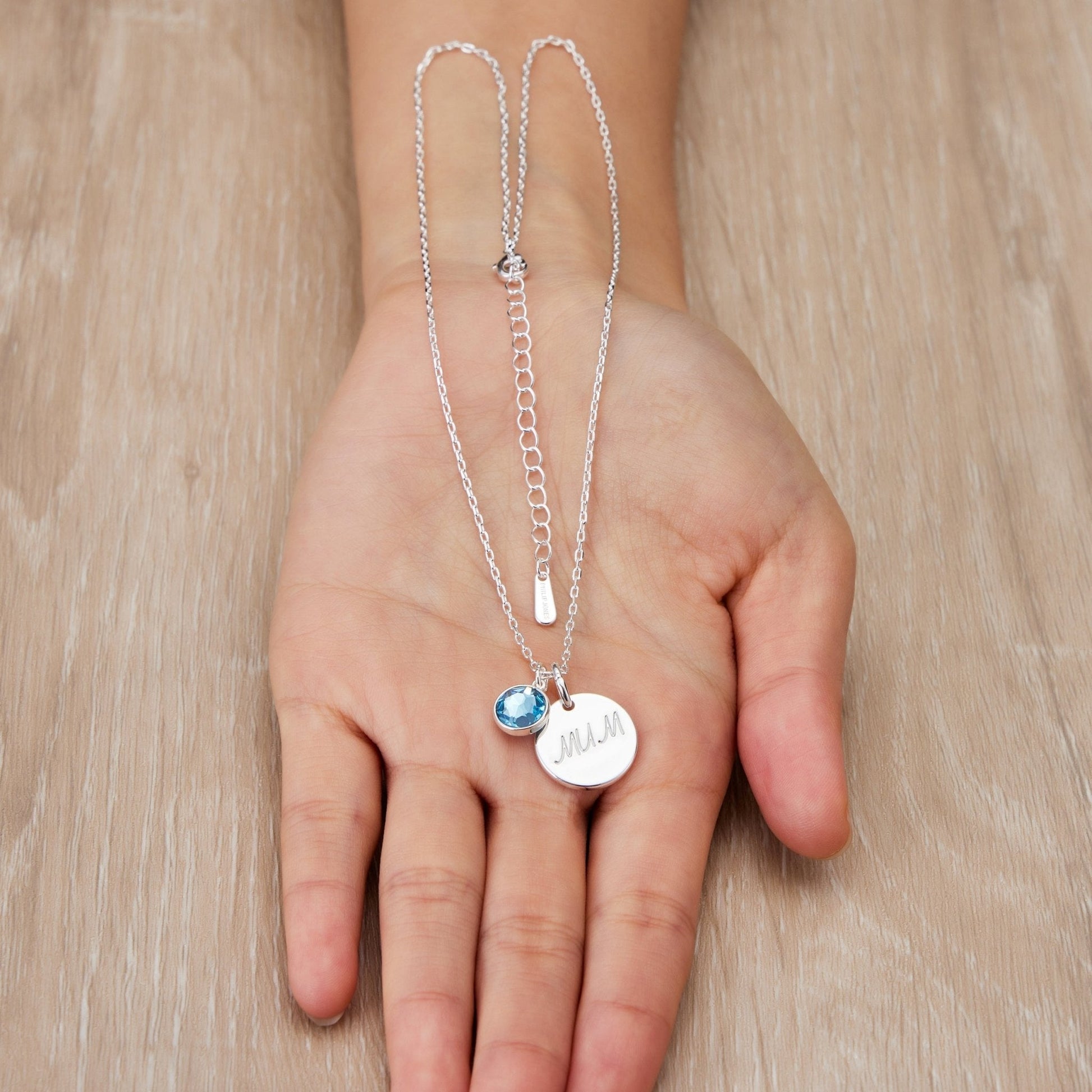 This exquisite Mum Birthstone Necklace from renowned designer Philip Jones is the perfect way to show your love. Crafted from silver plated brass alloy and featuring Zircondia® crystals, this stunning pendant is 14mm high and 8.5mm wide, with a 43cm plus 5cm extender chain. The initial pendant is 15.3mm tall and 15.3mm wide and weighs 2.58g, and the necklace is completed with a lobster claw closure. Beautiful and durable, this necklace is sure to show your Mum how special she is.