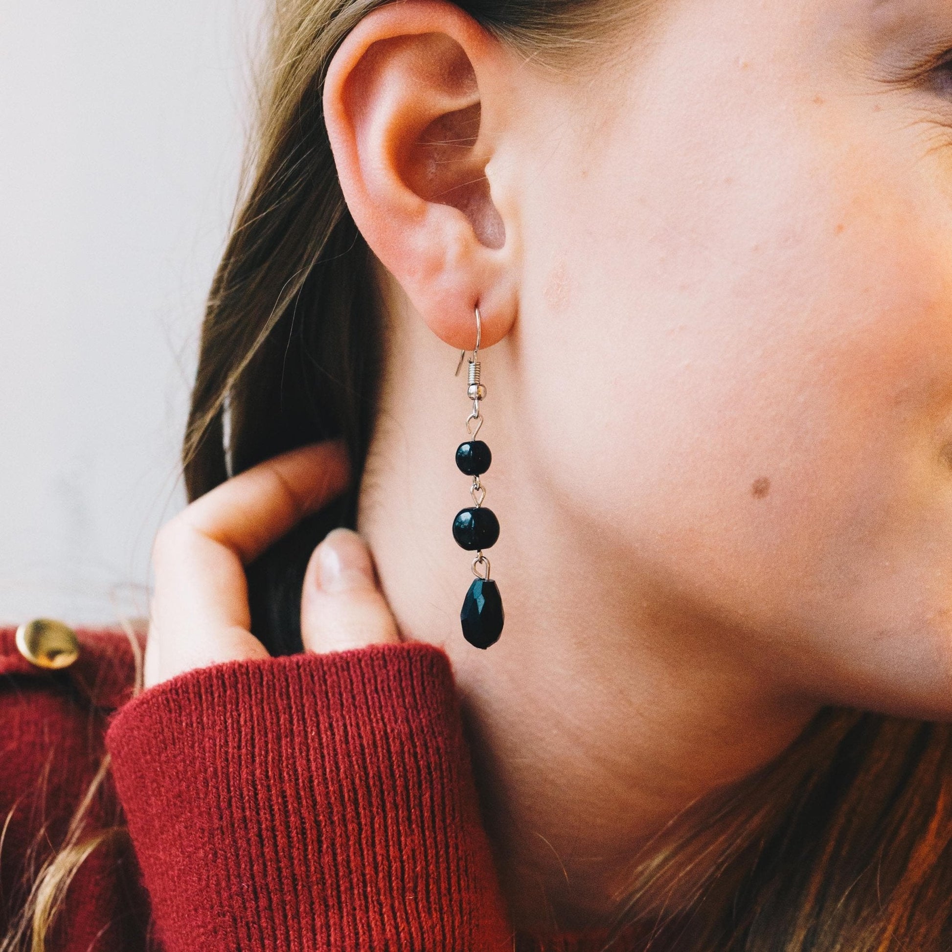 The Philip Jones Black Crystal Choker Set is a stunning jewellery piece, crafted with silver plated brass alloy and featuring a 32.5 cm + 5.5 cm extender choker necklace with a width of 4 cm. Resin stones in assorted shapes in black colour range from 5.5 mm to 8 mm, for a total weight of 16.3g. The set also includes 6 drop earrings with dimensions of 40 mm x 8 mm, made of resin stones in assorted shapes of size 6 mm to 8 mm (4.2 g). Secure with a lobster claw.
