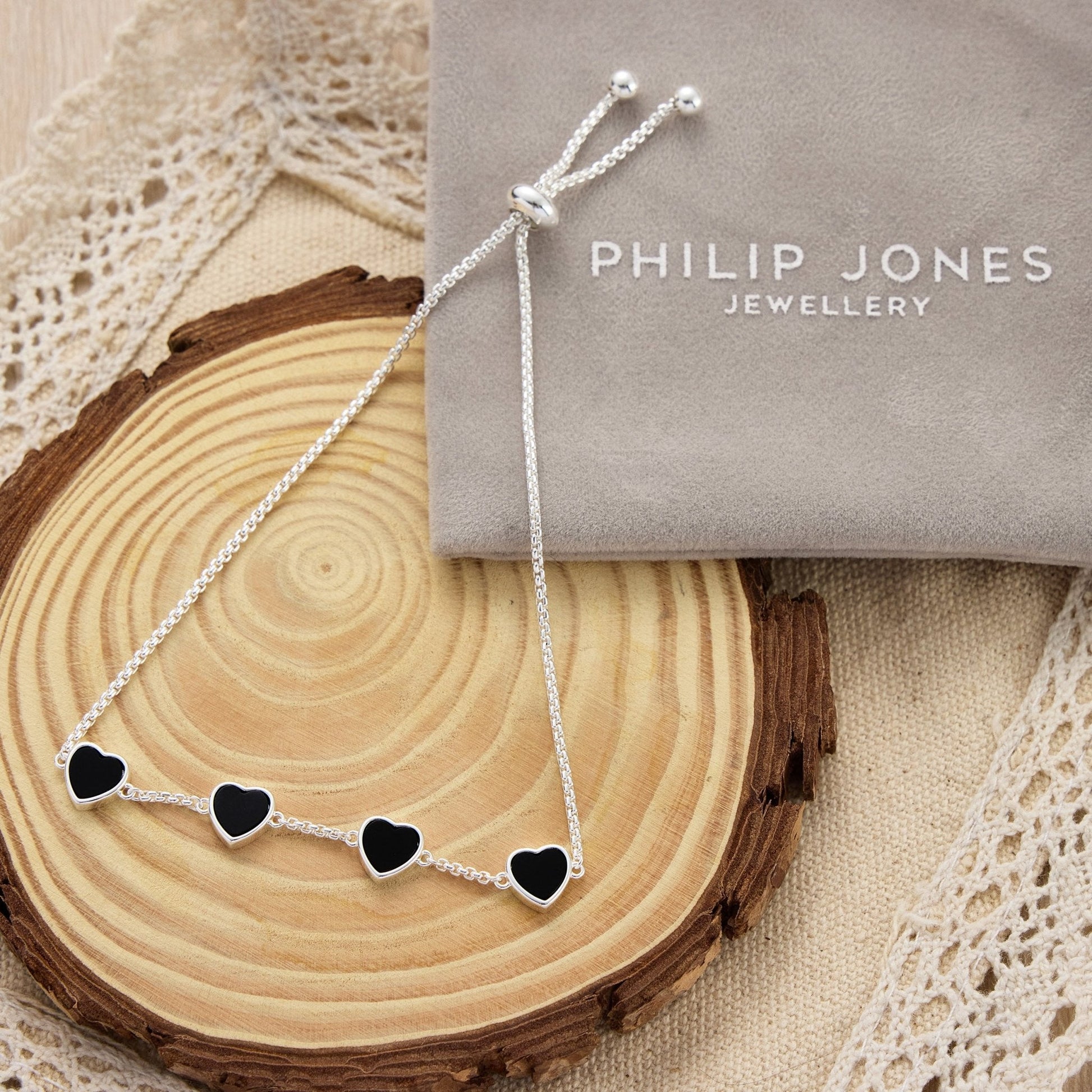 This elegant Black Onyx Gemstone Multi Heart Friendship Bracelet combines genuine black onyx stones with silver-plated brass for a stylish, hypoallergenic accessory. Adjustable from 12cm to 24cm with a convenient slider closure, it offers a perfect fit for any wrist. The delicate 7.5mm heart-shaped stones symbolize friendship and love, making it an ideal gift. Lightweight at just 4.76g and presented in a charming gift pouch, this bracelet is both meaningful and versatile for everyday wear.