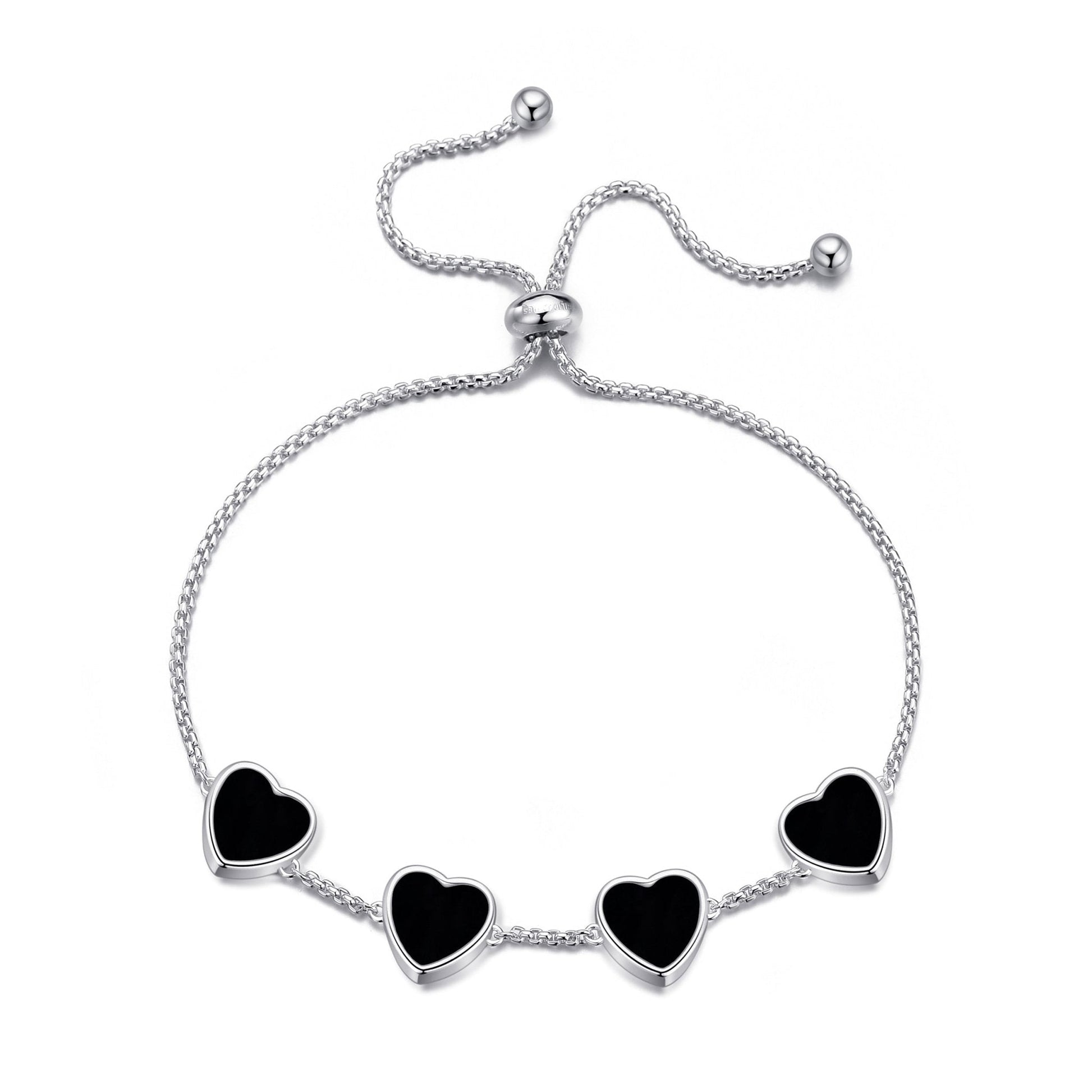 Black Onyx Gemstone Multi Heart Friendship Bracelet