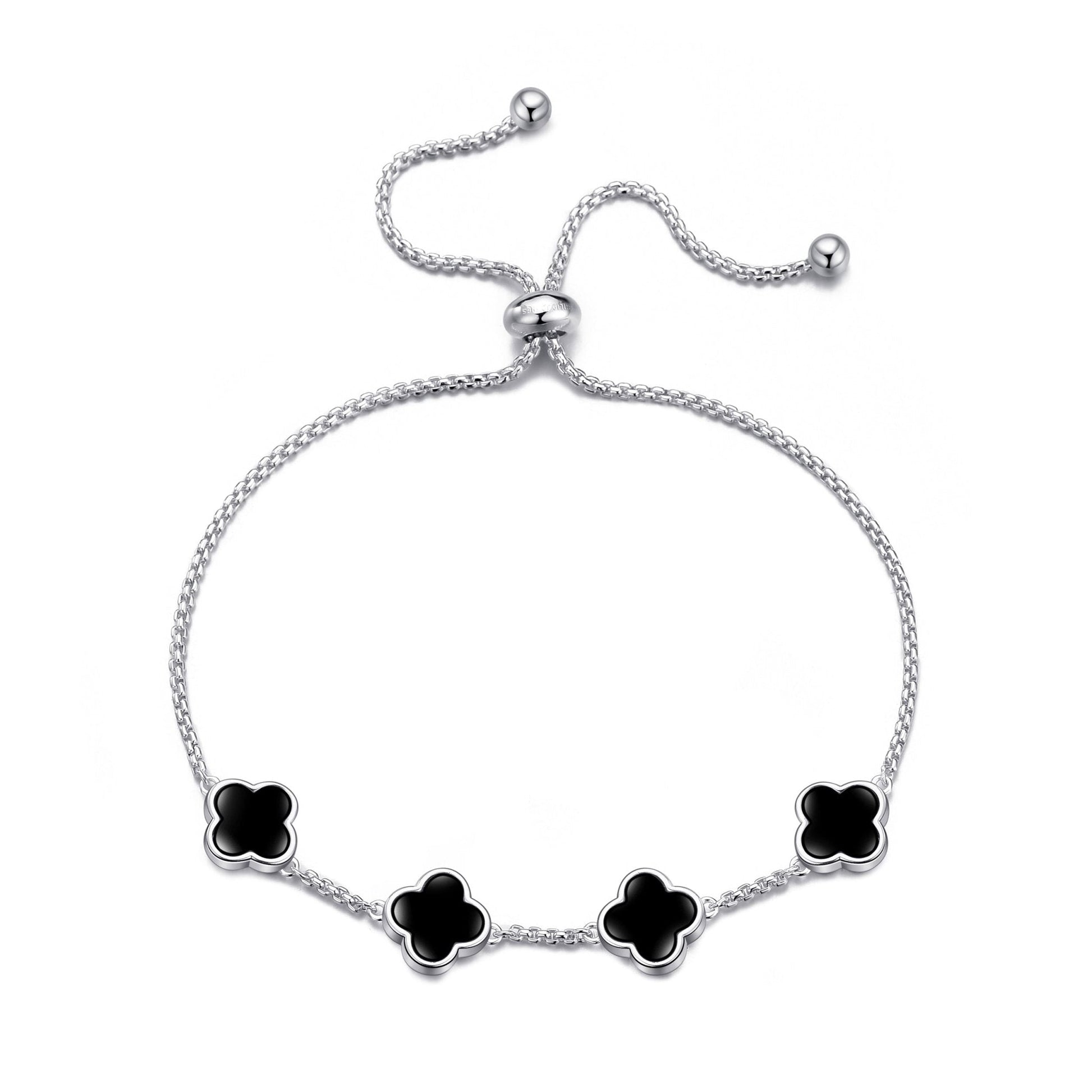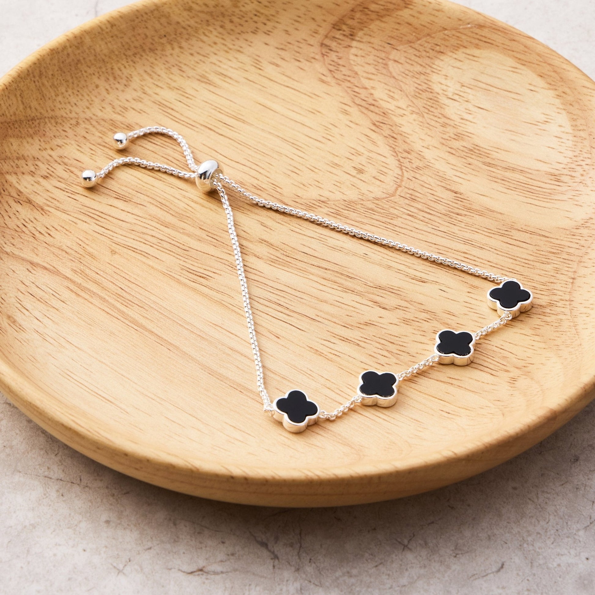 Crafted from Genuine Gemstones, this Black Onyx Friendship Bracelet is silver plated and hypoallergenic. Featuring a stunning clover design with each clover 9.5mm, it is fully adjustable from 12cm to 24cm, making it a perfect fit for anyone! This bracelet comes beautifully packaged in a branded gift pouch.