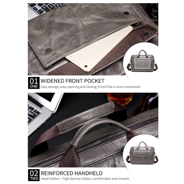 BULL CAPTAIN 046 Men Leather Briefcase First-Layer Cowhide Computer Handbag(Brown)