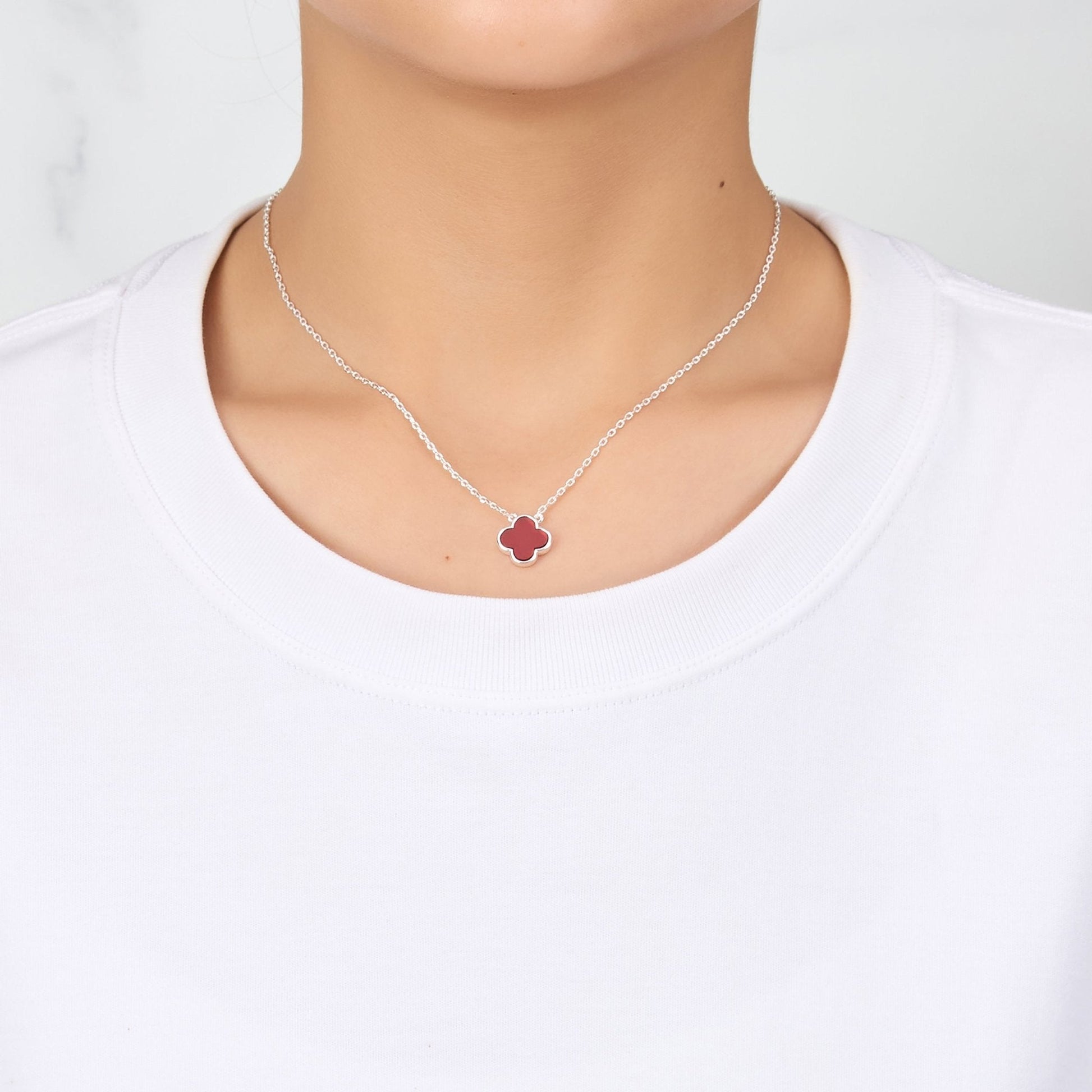 Carnelian Gemstone Clover Necklace
