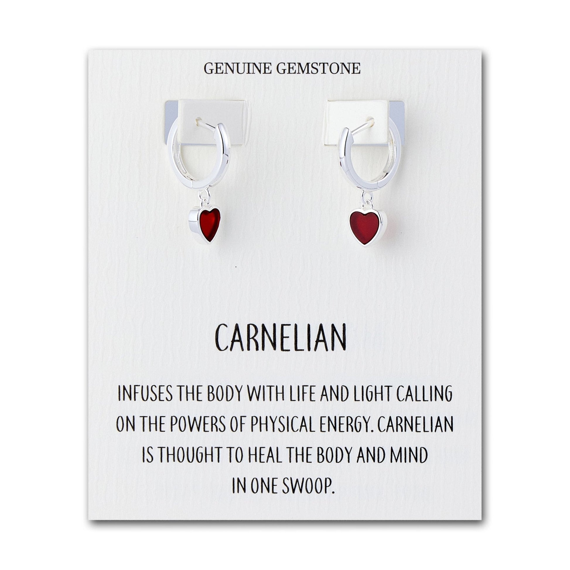 Carnelian Gemstone Heart Charm Hoop Earrings with Quote Card