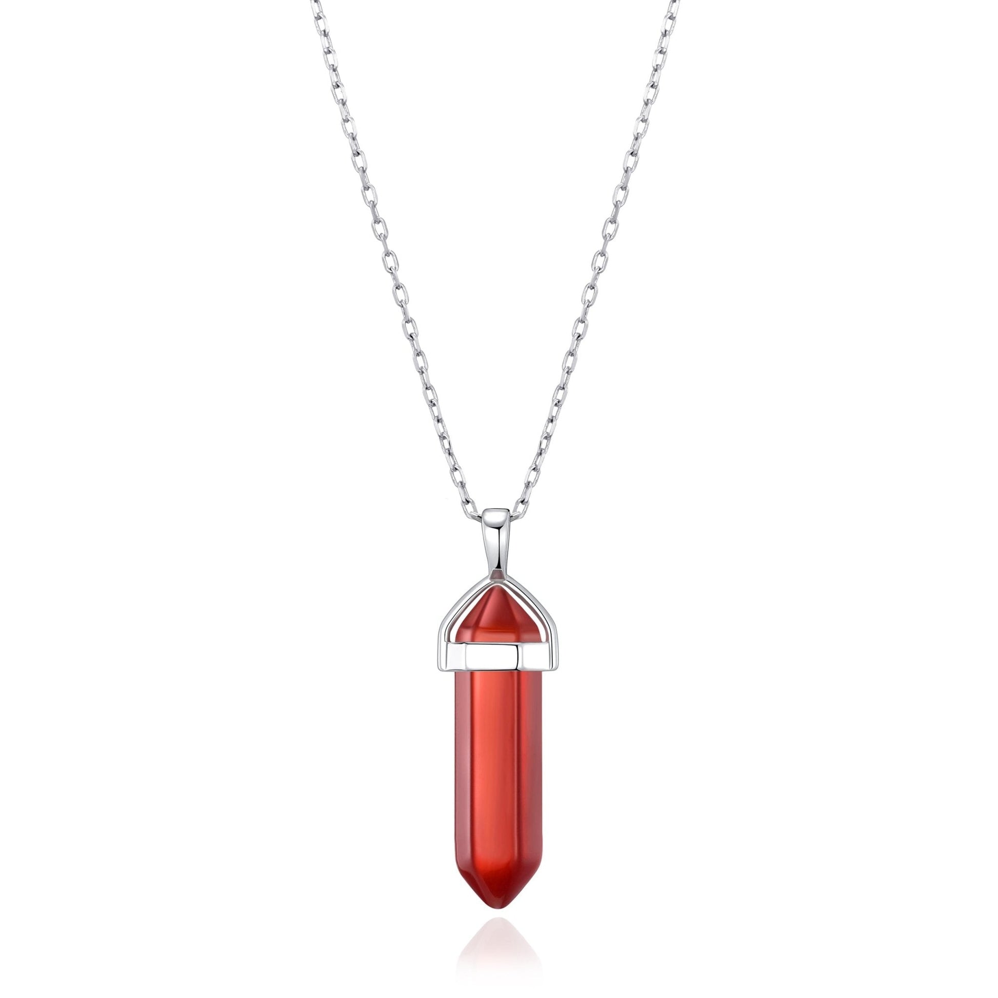 Elevate your style with our Carnelian Genuine Gemstone Necklace. Made with silver plated, hypoallergenic materials, this necklace features a stunning red hexagonal prism carnelian stone, adding a touch of elegance to any outfit. Packaged in a beautiful gift pouch, this necklace makes the perfect present for yourself or a loved one.