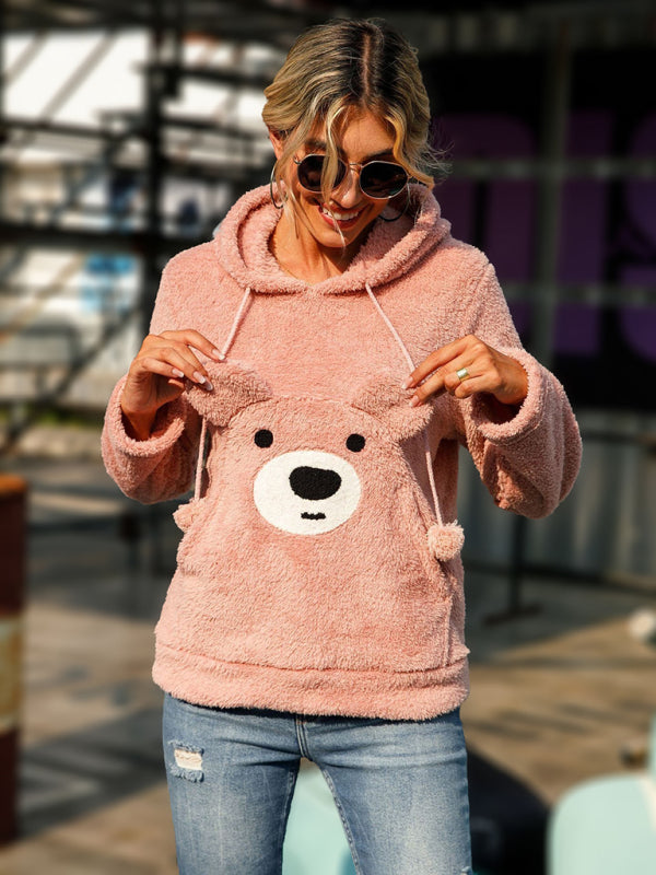 The casual and cute hooded long-sleeved pullover loose double-sided velvet bear pattern sweatshirt is suitable for a variety of scenes. The simple design makes the boring season colorful and interesting. A variety of matching options make you confident and beautiful. Please use the sizing guide shown in our images when purchasing. Please read each element in the size guide carefully before choosing a size. Sizes are measured manually, and an error of 1-3cm is normal.