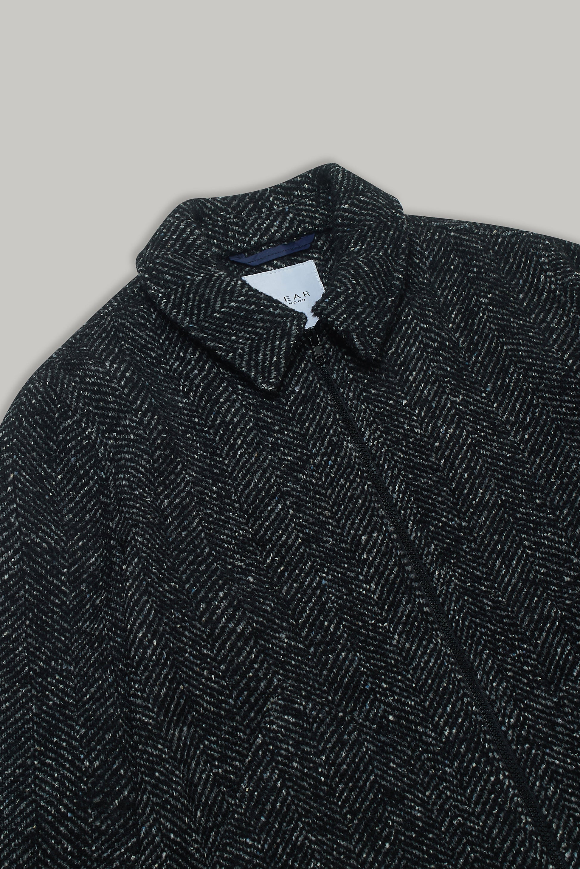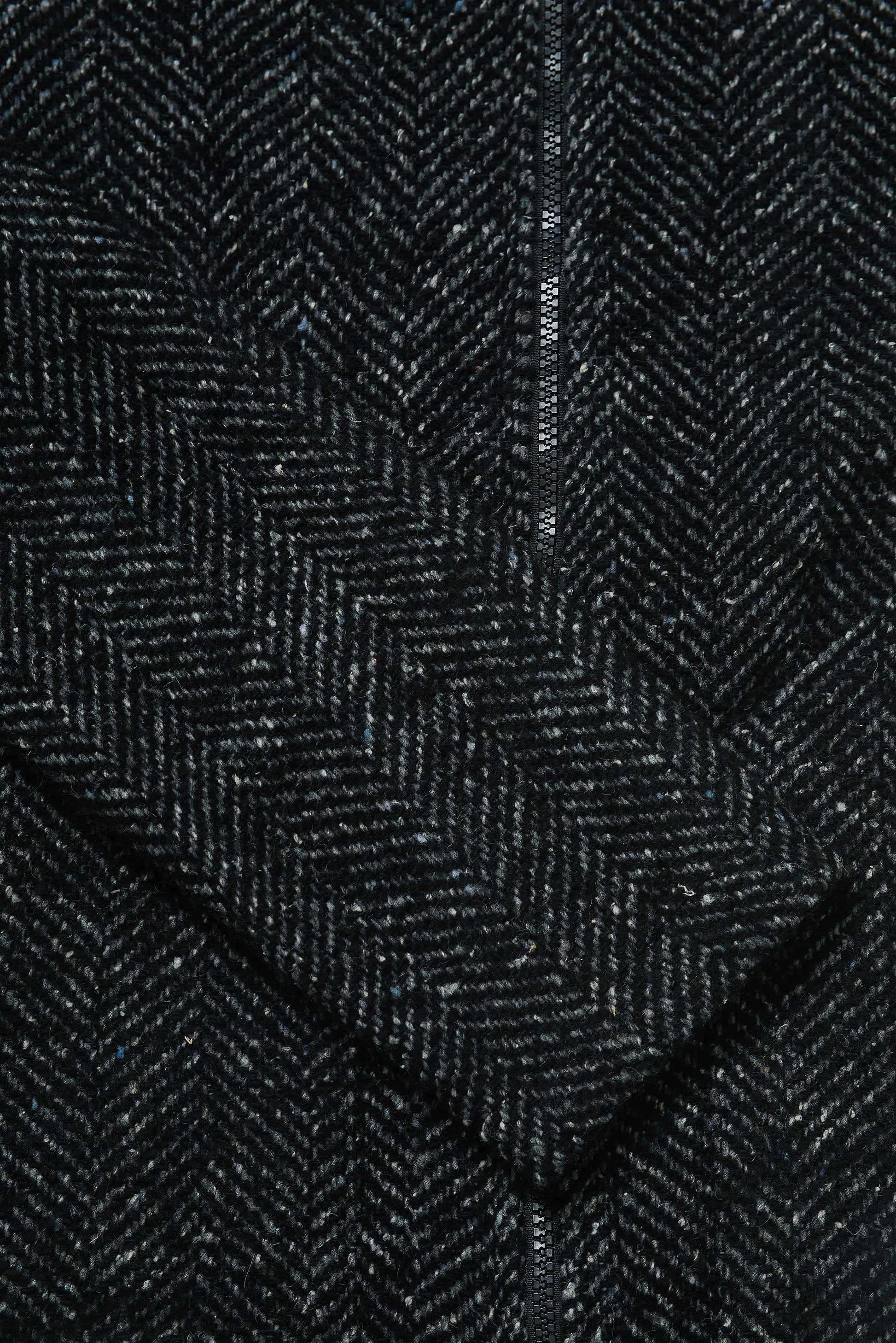 This Black & White Hatch material boasts the warmth and insulation of wool, but without the weight and heft, perfect for winter layering. It's mixed fabric ensures durability and shape retention.
