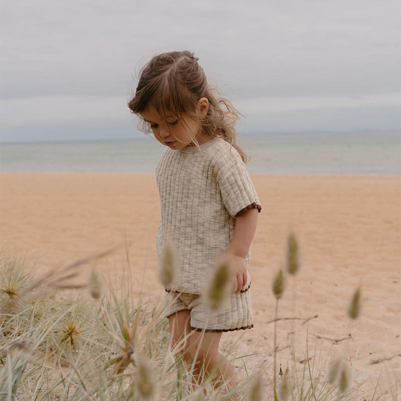 Product information: Color: Brown, oatmeal color color-contrasting stripe, oatmeal color solid color Suitable height: 66cm,73CM,80cm,90cm,100cm Suit type: blouse and pants Fabric name: Cotton Closed style: pullover Sleeve length: short sleeve Style: Korean style