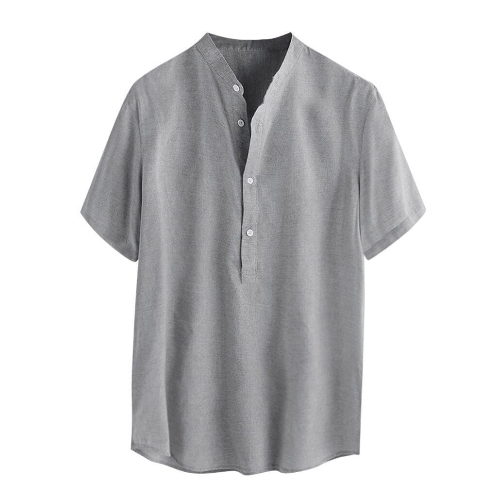 Collar type: stand-up collar Sleeve length: short sleeve Pattern: plain Thickness: General Error range: 1-2 Main fabric composition: linen The content of the main fabric ingredient: 65 (%) Color: navy blue, gray, khaki, light army green