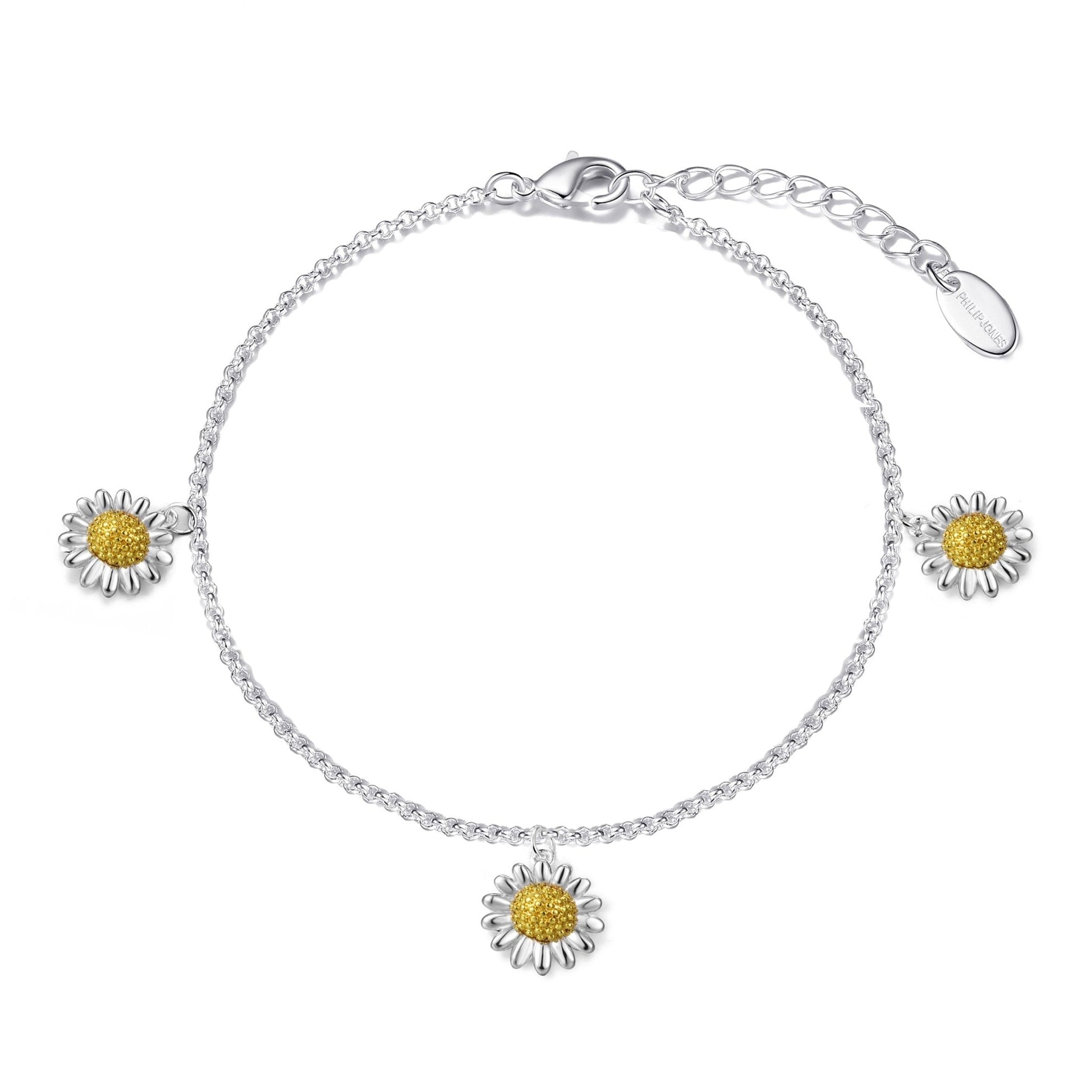 Breathe life into your wardrobe with this delicate Daisy Bracelet. Crafted with a high-polished finish of gold and silver plating, this hypoallergenic charm bracelet will add a touch of luxury and elegance to any look. The 17.8cm extended chain and lobster claw clasp make it the perfect gift for any occasion.