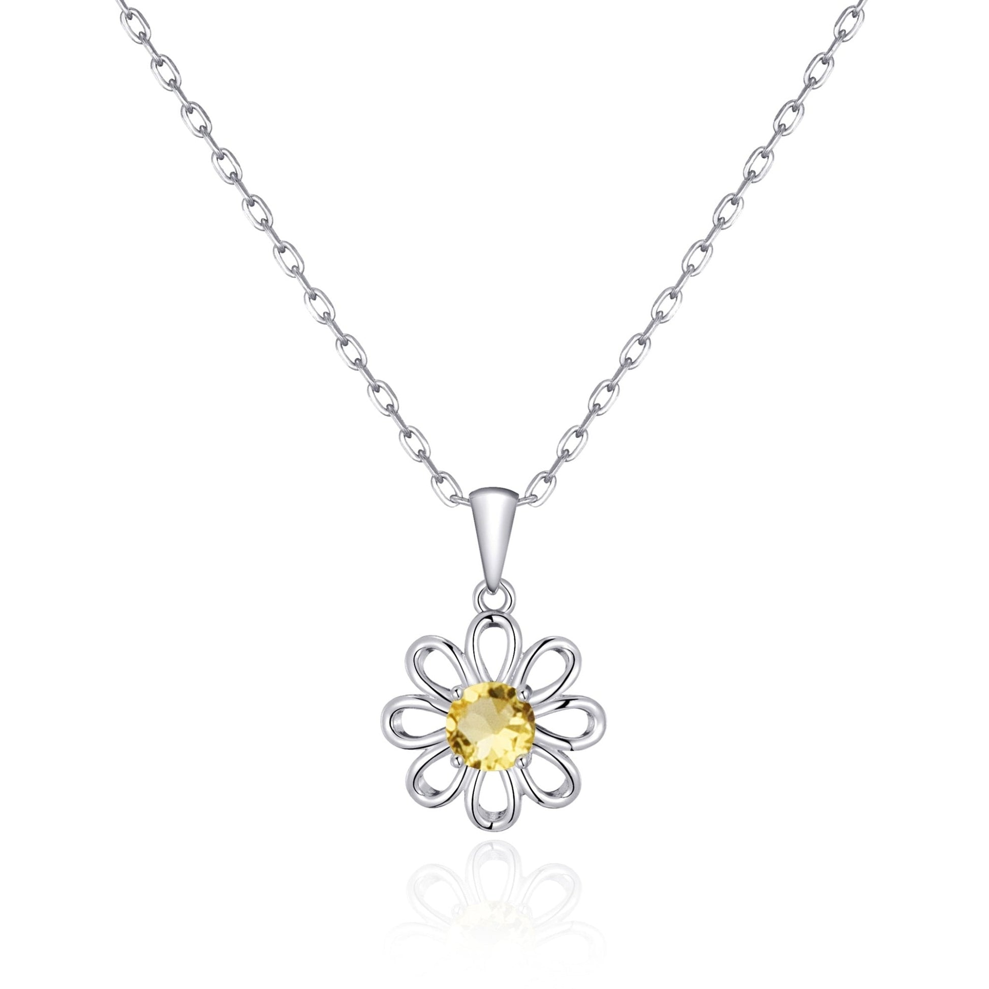 This stunning Daisy Necklace, by Philip Jones, is the epitome of sophistication. Crafted from a brass alloy, plated in silver, it complements and enhances the single, 6mm round-shaped Zircondia® crystal in a classic pendant design. The 43cm plus 5cm extender chain features a lobster claw closure and weighing in at 3.2 grams, it's a lightweight and timeless accessory.