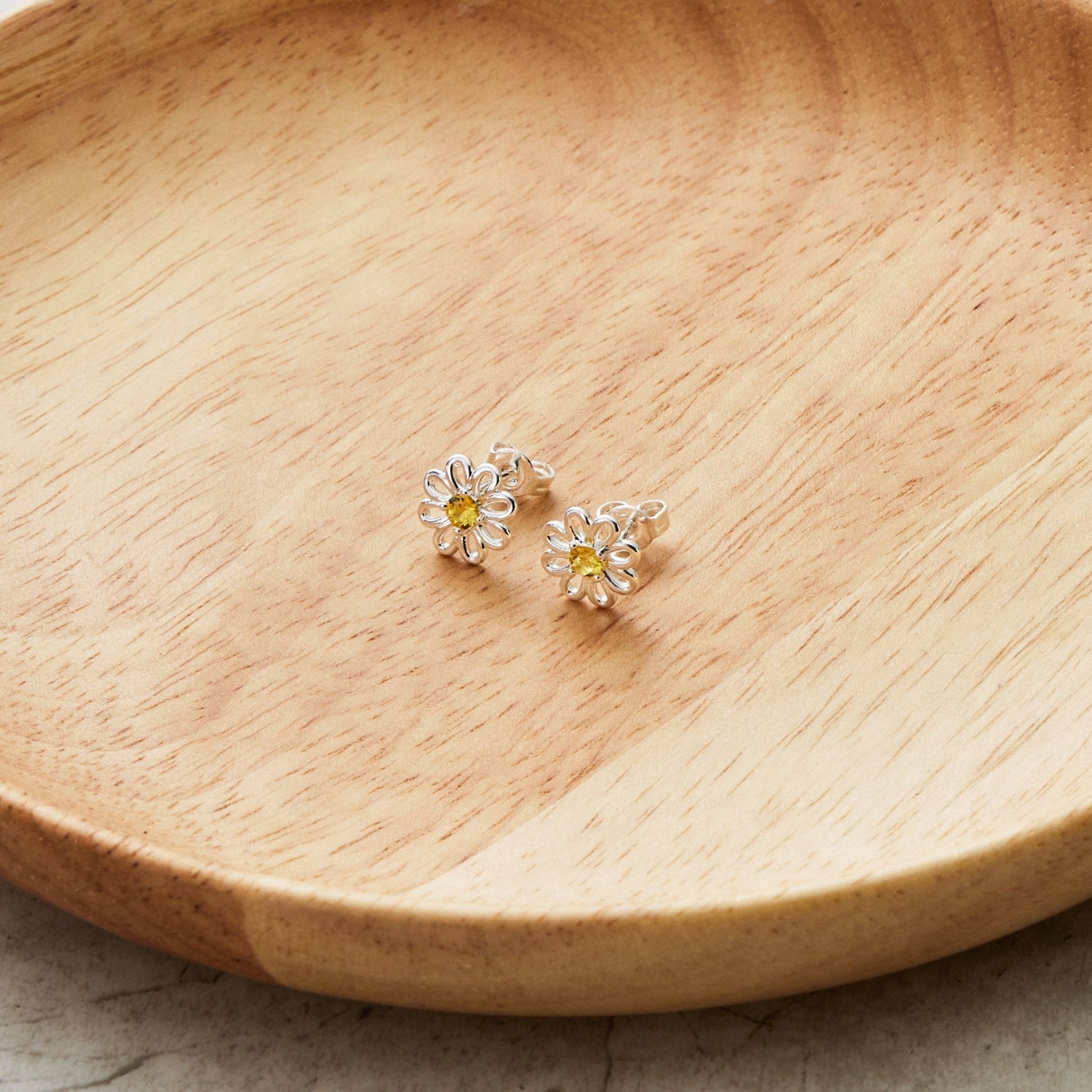Add a touch of sparkle to your wardrobe with these Philip Jones Daisy Stud Earrings. Crafted with silver-plated brass alloy, these earrings are set with Zircondia® Crystals for a beautiful yellow hue. Each earring features a 9.3mm round stone set in a 4-prong setting, secured with a butterfly closure. Wear these earrings for any special occasion for a dazzling look.