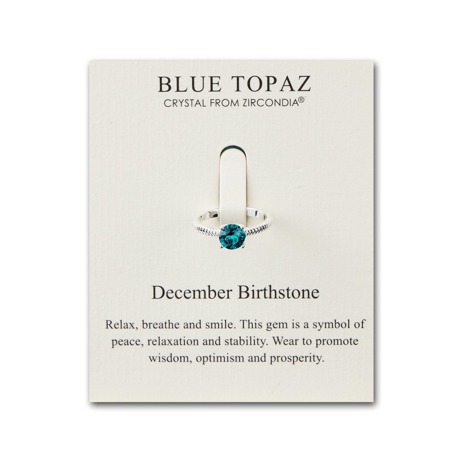 December (Blue Topaz) Adjustable Birthstone Ring Created with Zircondia® Crystals