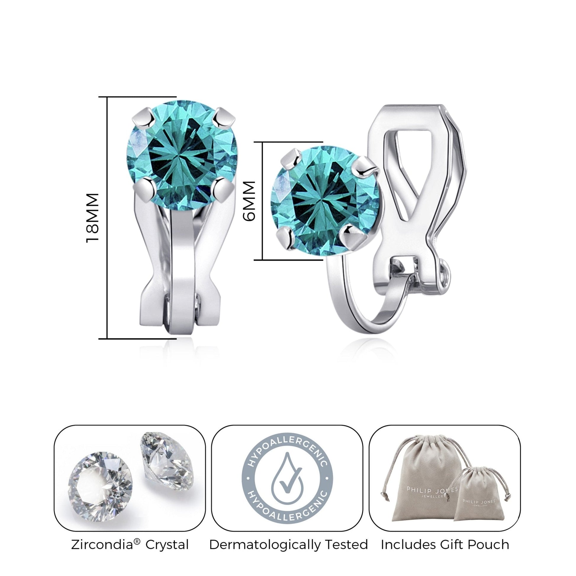 These exquisite December (Blue Topaz) Birthstone Clip On Earrings are made with hypoallergenic Zircondia® Crystals and silver plated brass alloy for a beautiful touch of elegance. Exclusively from Philip Jones, these clip-on earrings are the perfect gift for a loved one, with a gift pouch and quote card included. Treat yourself or someone special this holiday season!