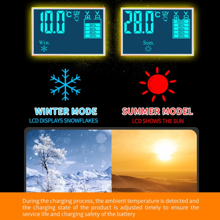 15. The portable battery charger/maintainer automatically detects the outside temperature and starts the winter and summer mode, and automatically selects the appropriate charging voltage according to the temperature