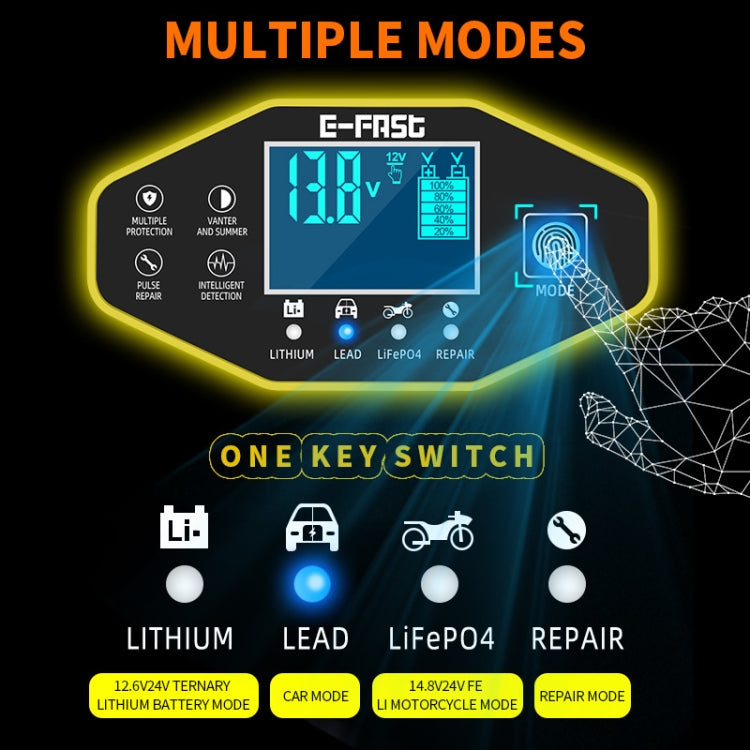E-FAST Car Battery Charging LED Current Voltage Power Display Charger(EU Plug)