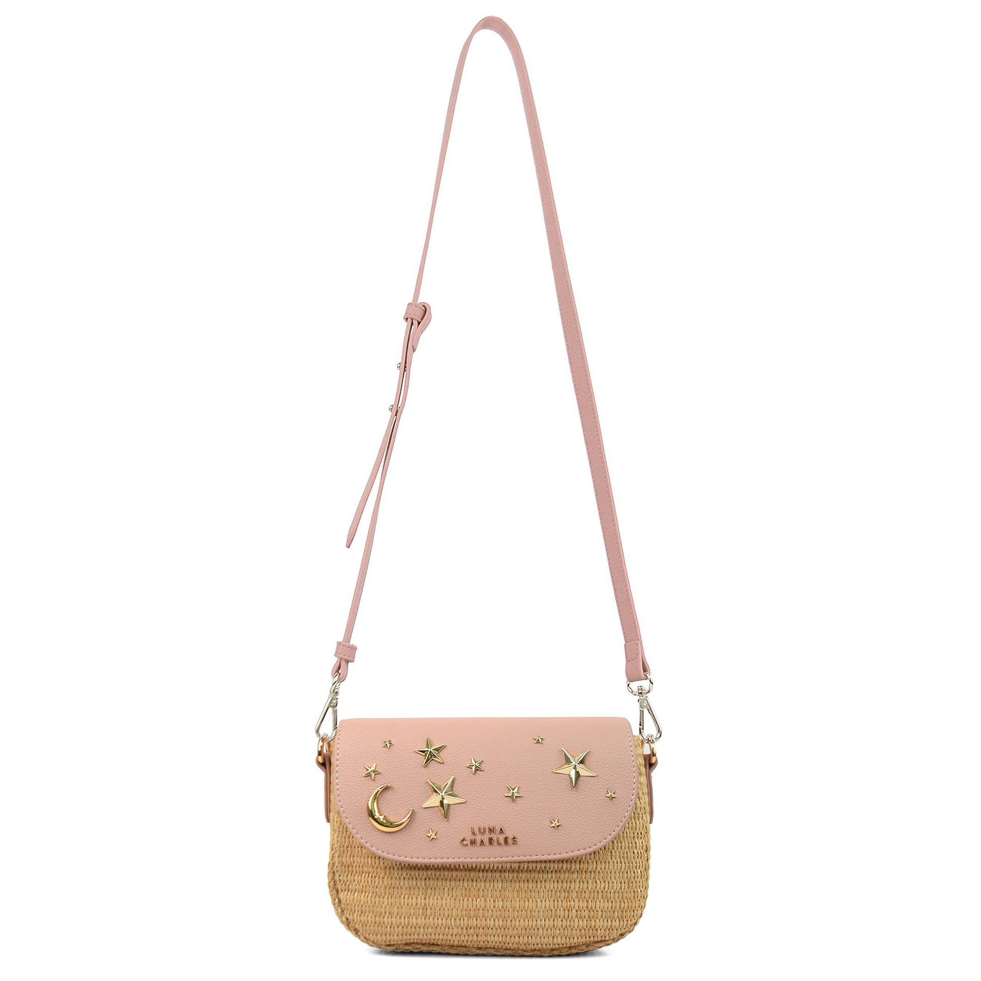 Be a real star with the Elena handbag! Crafted with natural rattan and vegan leather, it's adorned with glimmering gold moons and stars, it's the perfect accessory for those days when you want to shine.