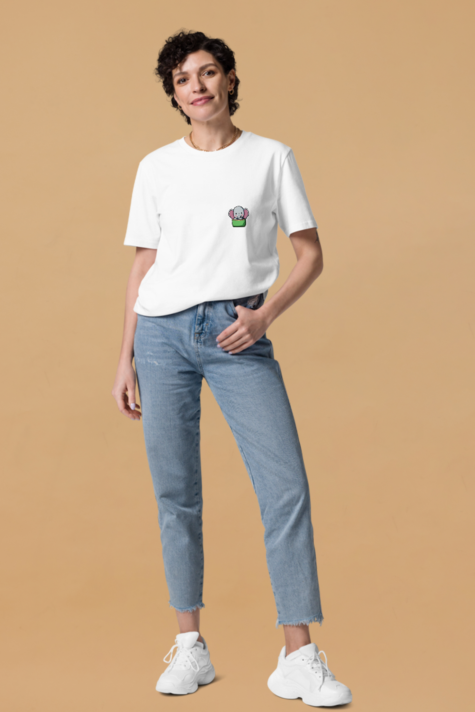 Embark on a journey of comfort and conscientious style with our Elephant T-Shirt—a wardrobe essential that goes beyond fashion. Crafted from 100% organic ring-spun cotton, this unisex white t-shirt is a testament to our commitment to quality and sustainability. The adorable drawing of an elephant nestled inside the pocket adds a touch of charm to your everyday wear. With a single jersey and medium fit, this shirt ensures a perfect blend of cosiness and style. Choose a tee that not only feels great but also aligns with your eco-conscious values—opt for our Elephant T-Shirt, where comfort meets compassion.