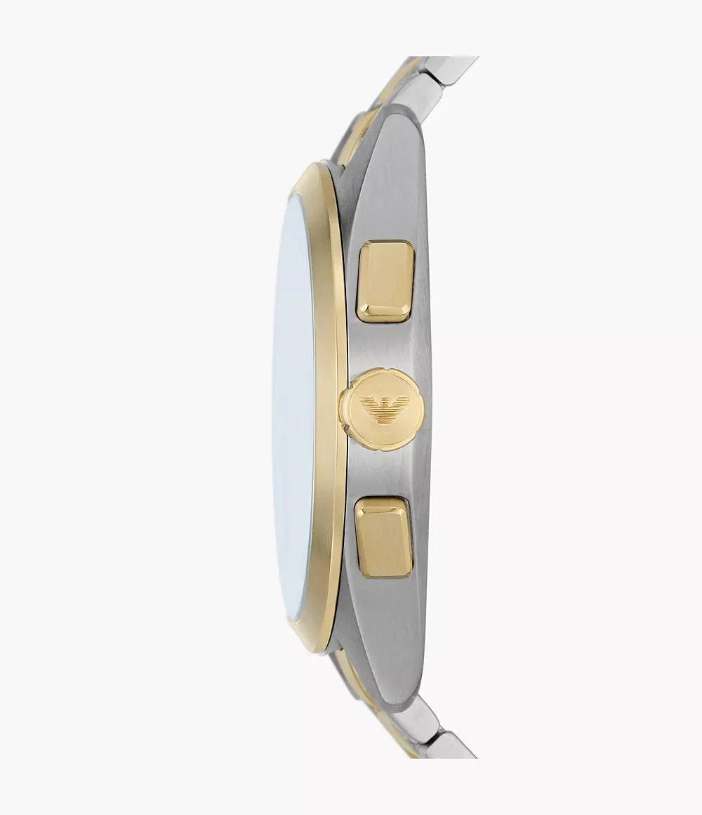 Enhance your style with the Emporio Armani AR11511 Men's Chronograph Watch. This sophisticated timepiece is designed for the modern man who values both luxury and functionality. Featuring a striking green dial, a two-tone stainless steel and gold-tone bracelet, and a tachymeter bezel, the AR11511 is perfect for any occasion, from formal events to casual outings.