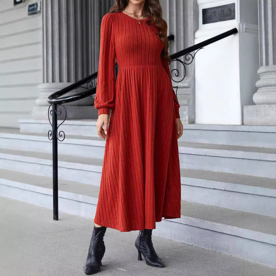European And American Temperament Slim Solid Color Knitted Long-sleeved Dress