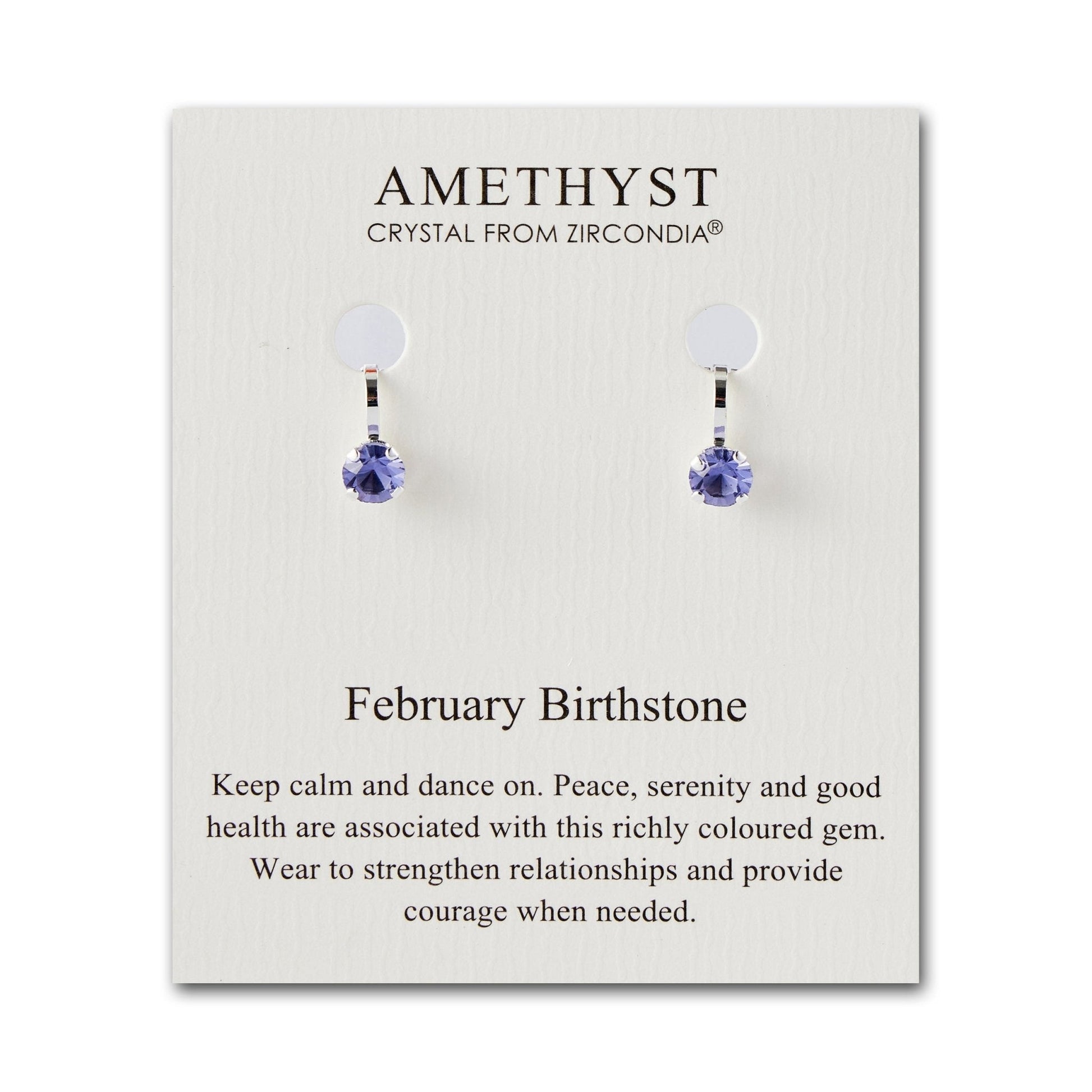 February (Amethyst) Birthstone Clip On Earrings Created with Zircondia® Crystals