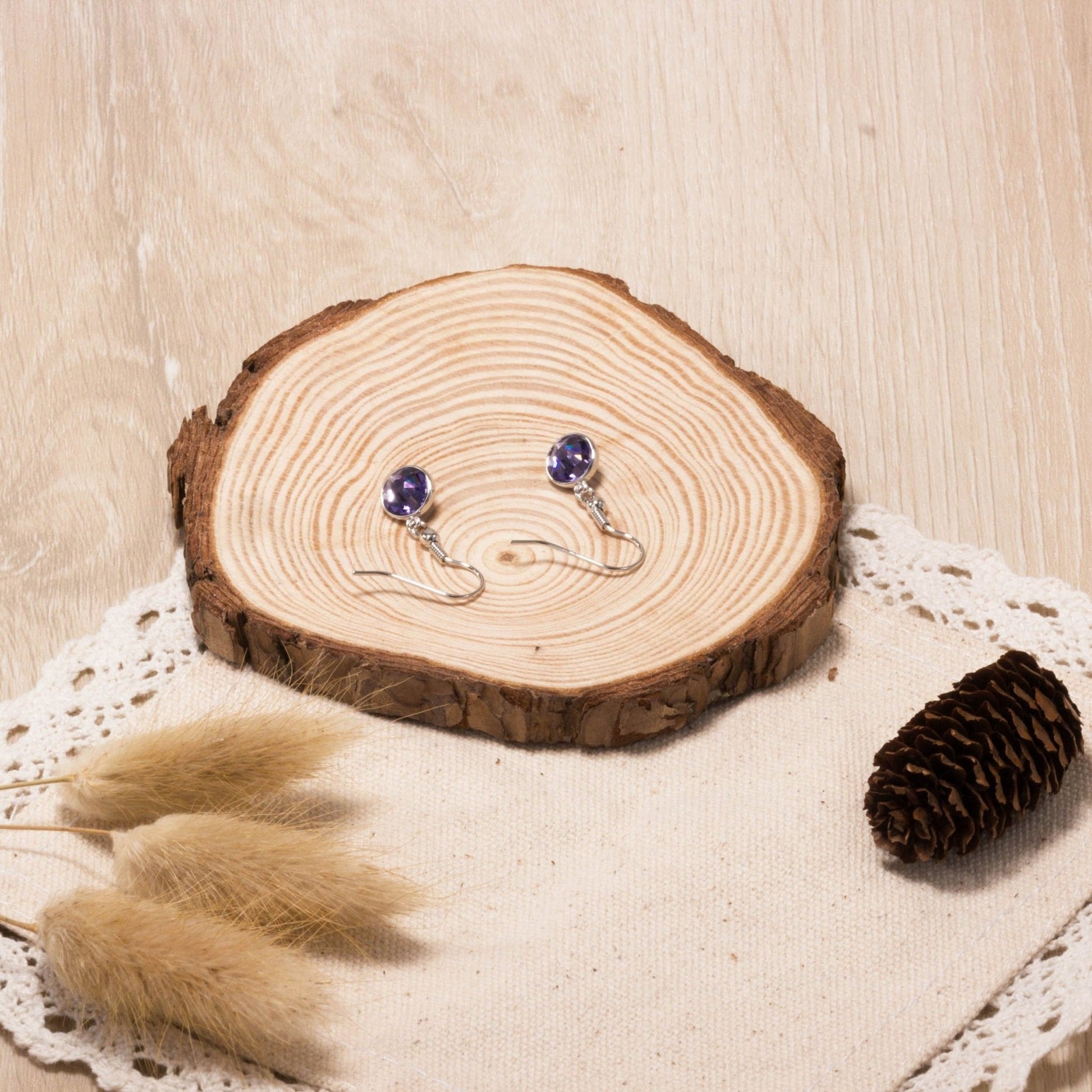 These beautiful February birthstone earrings are crafted with Amethyst Zircondia® Crystals set in a silver plated brass alloy frame. Each earring measures 27mm height by 8.5mm width with an 8mm round Purple Crystals from Zircondia® stone. They have a classic French Hook closure and weigh only 2g, making them light and comfortable to wear.